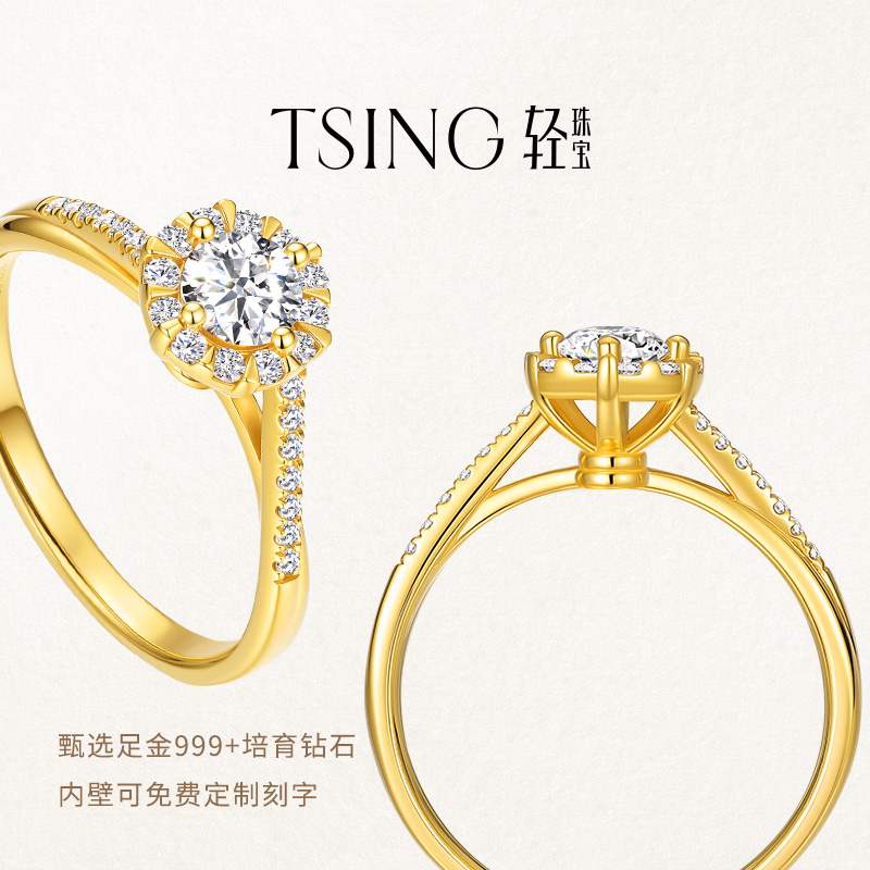 TSING轻珠宝【花好月圆】黄金戒指999足金30分钻戒女结婚求婚戒指
