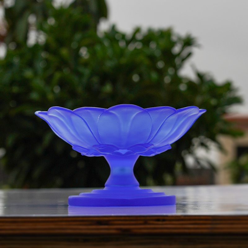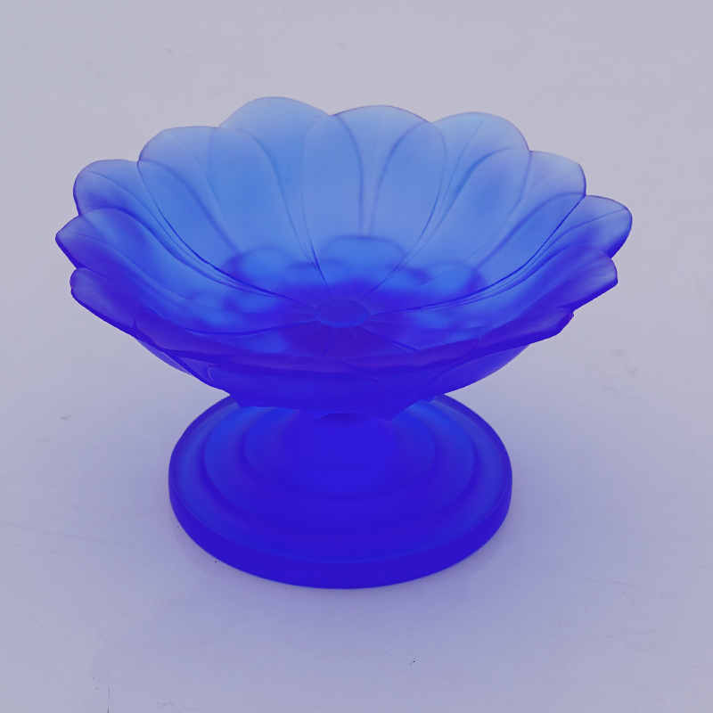 新款古法琉璃新款莲花果盘蓝色佛前装点心水果盆子佛台佛前摆件