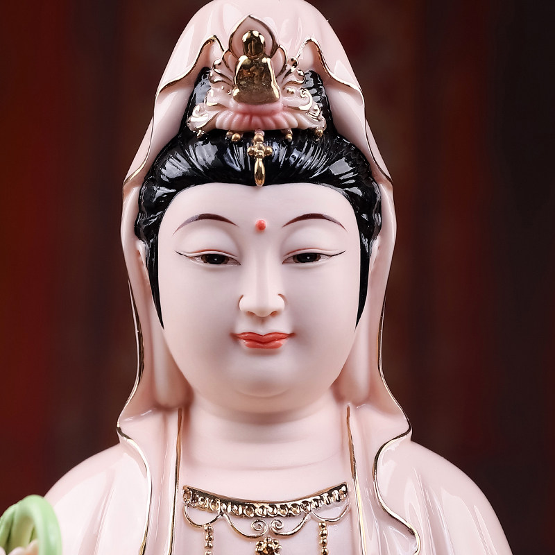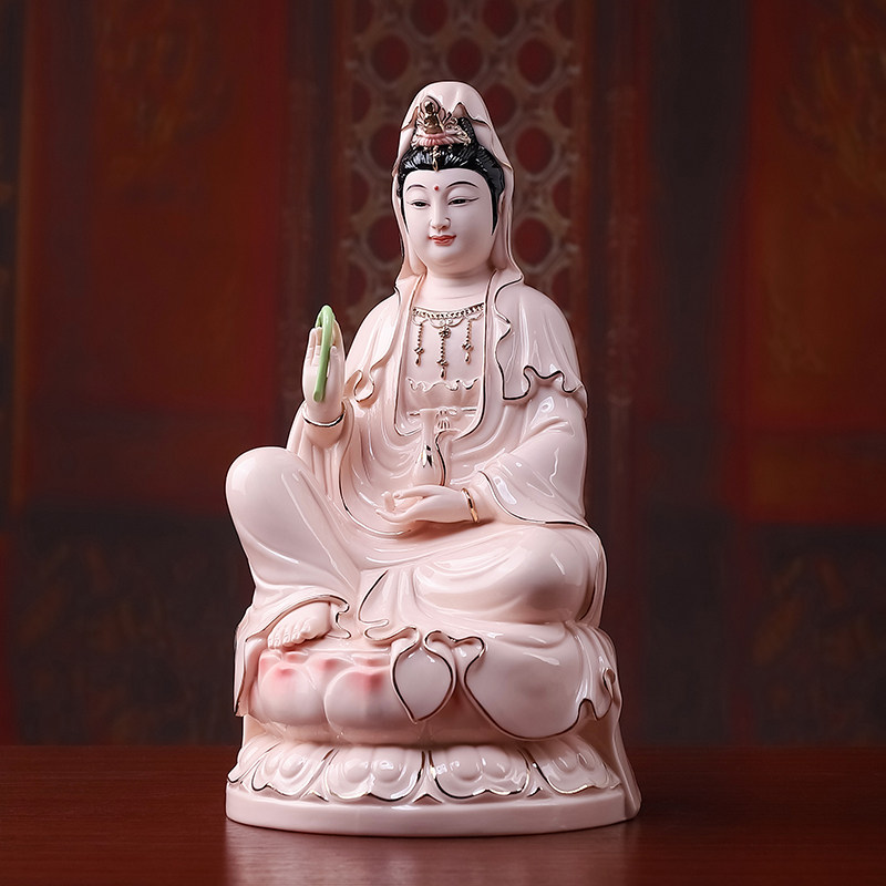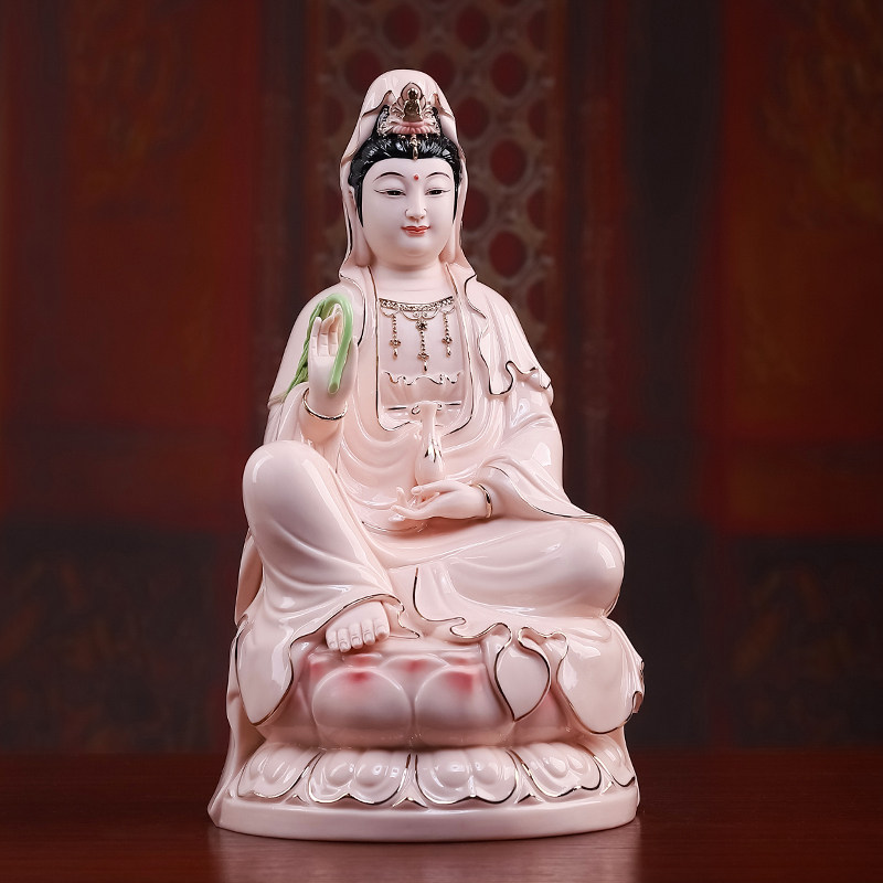 戴玉堂陶瓷坐莲观音菩萨坐像佛像供奉家用玉红南海观世音菩萨摆件
