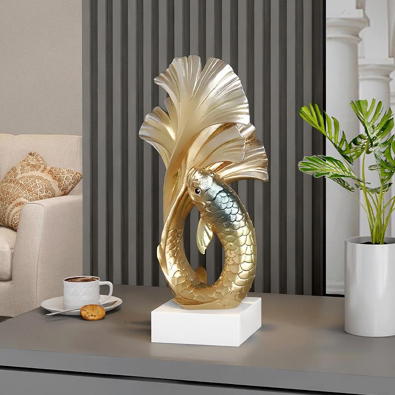 锦鲤摆件轻奢高级感小众客厅旺宅酒柜电视柜入户玄关桌面装饰品