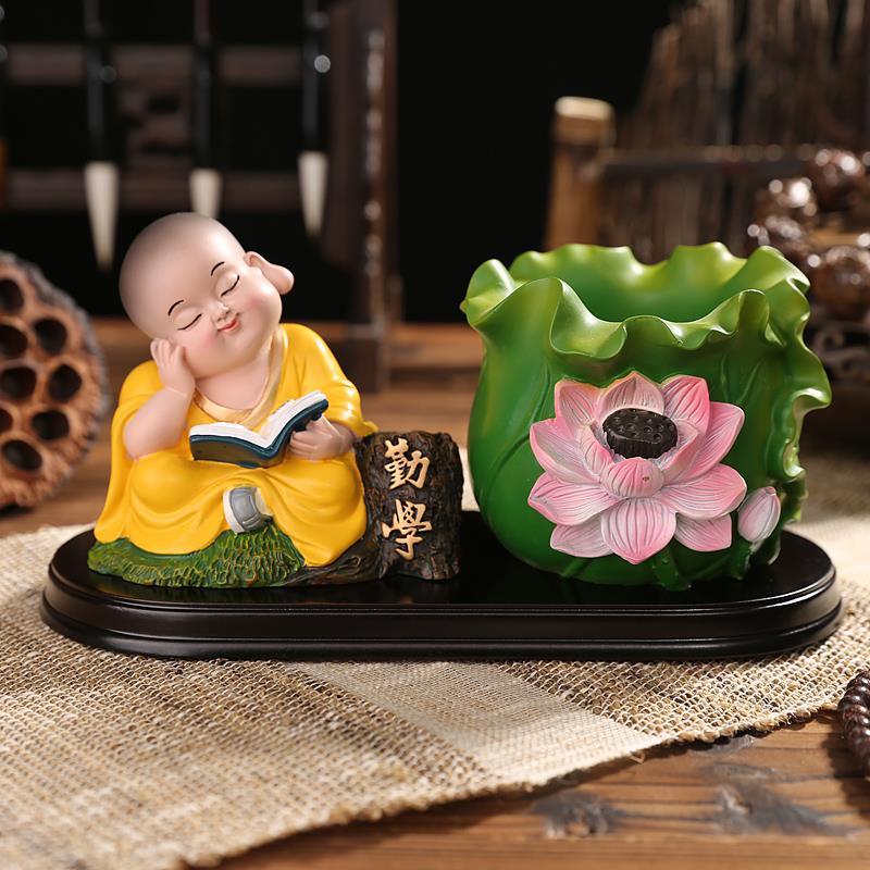 高档禅意小和尚公房办室面笔筒桌摆设生日礼物创意书摆件实用工艺