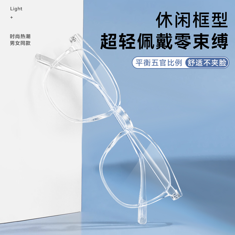 透明框素颜眼镜近视女可配度数镜片TR方框超轻防蓝光眼睛框镜架男