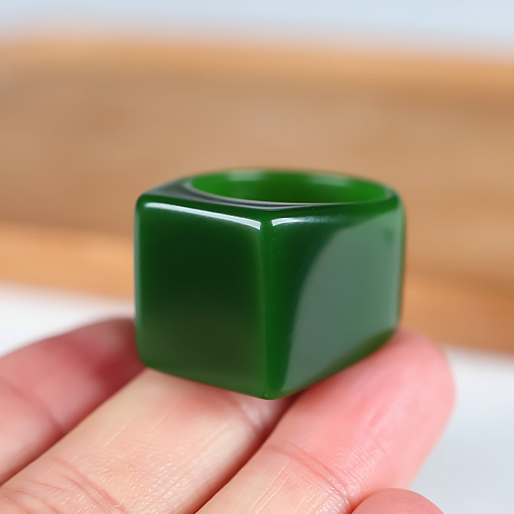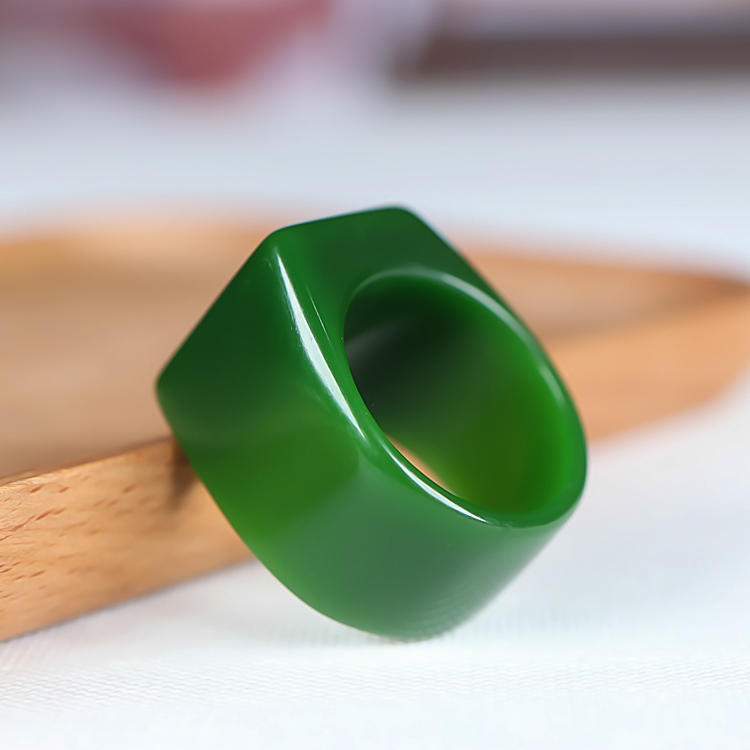 和田玉戒指 白玉指环男女款玉石指环碧玉扳指 菠菜绿碧玉天然玉石