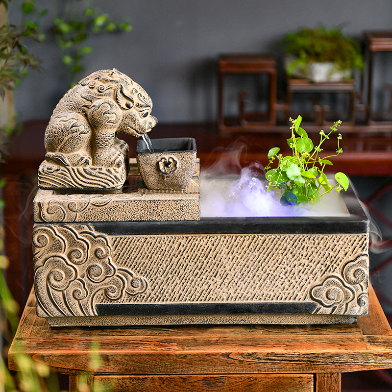 速发瑞兽流水摆件循环水生财喷泉加湿器日进斗金开业招财送礼鱼缸