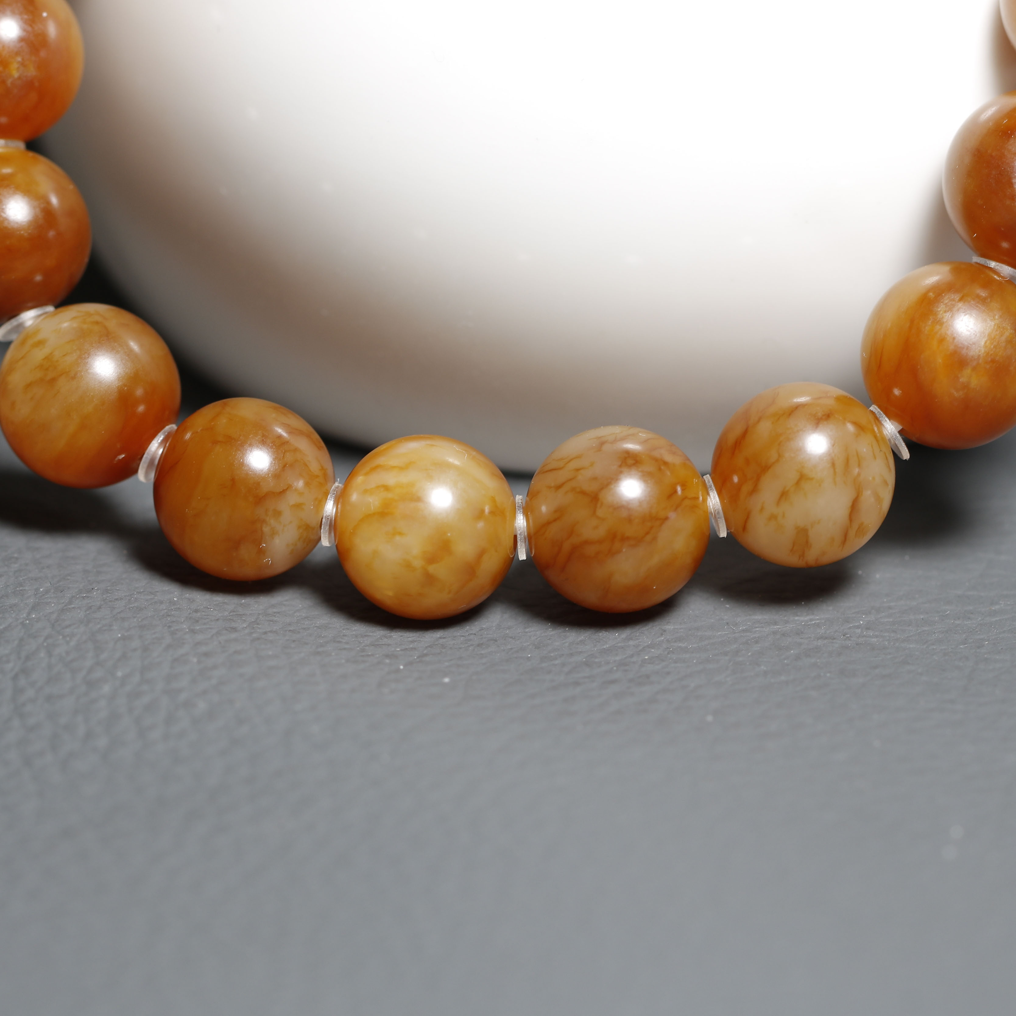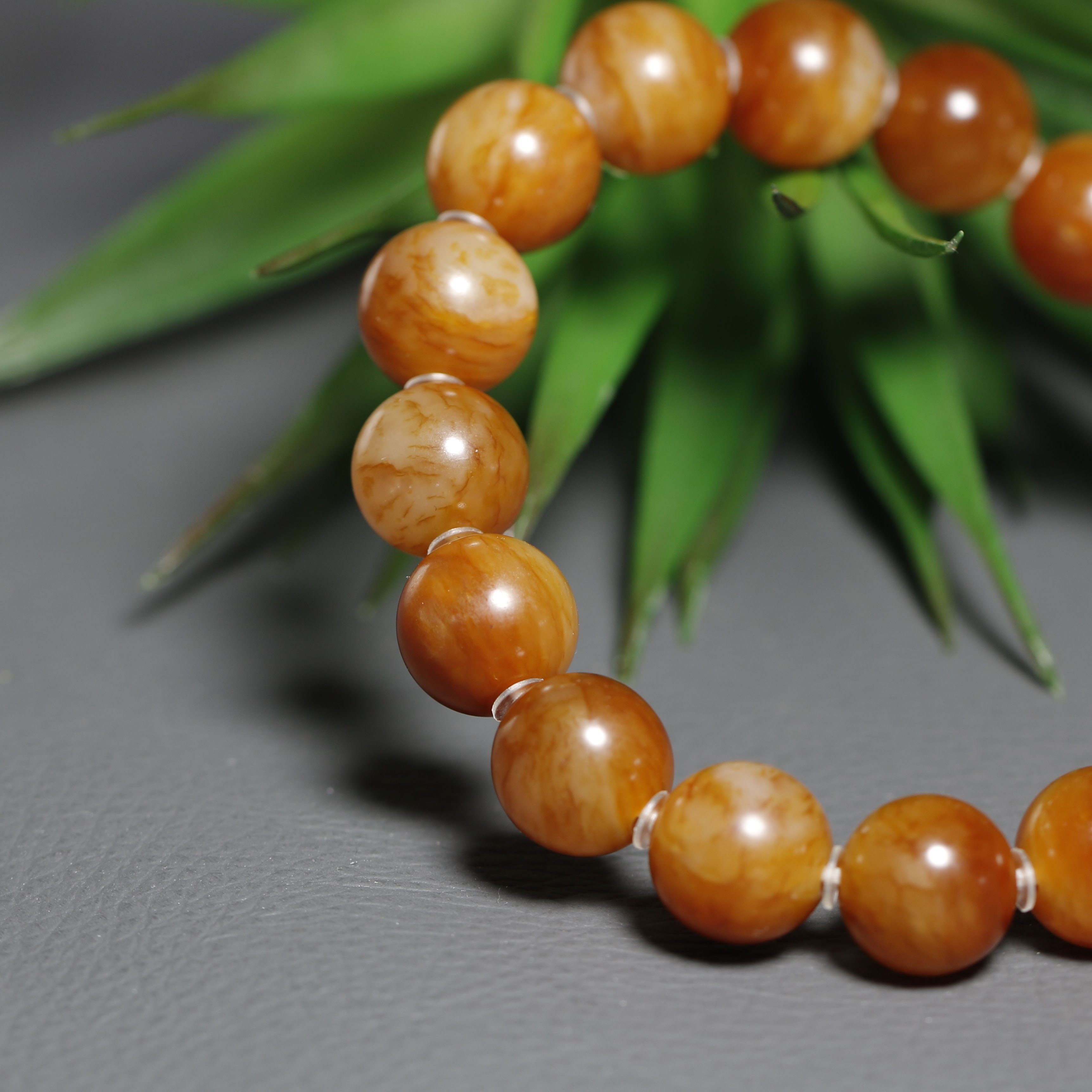 现货【珠玉珍藏】12mm新疆和田玉籽料红沁圆珠手串火焰沁血沁手链