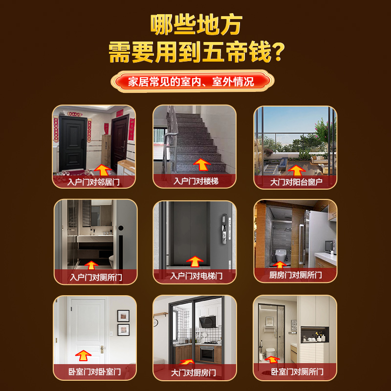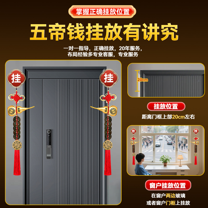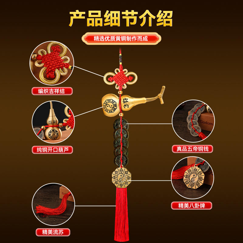 真品五帝钱门对门葫芦挂件入户门卧室厕所纯黄铜吉祥结压门槛古币