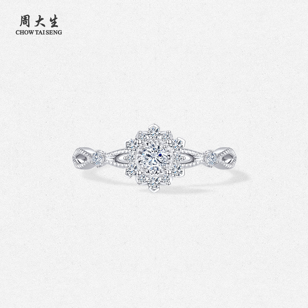 圣诞礼物周大生初雪系列钻戒白18K金克拉效果钻石戒指送女友