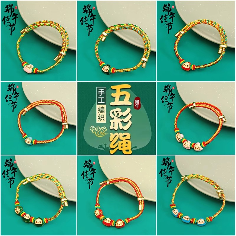 2025新款古法五彩绳抽拉手工编织手链端午节成人儿童平安成品手绳