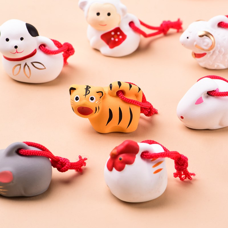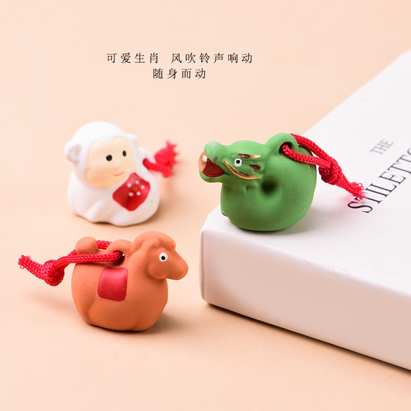 速发创意陶瓷12十二生肖风铃挂件动物铃铛摆件陶土可爱迷你家居