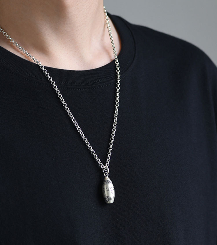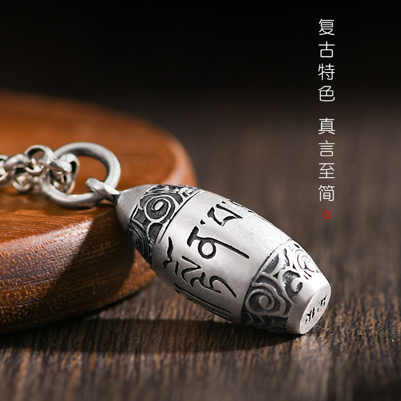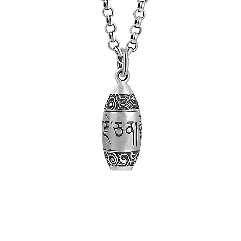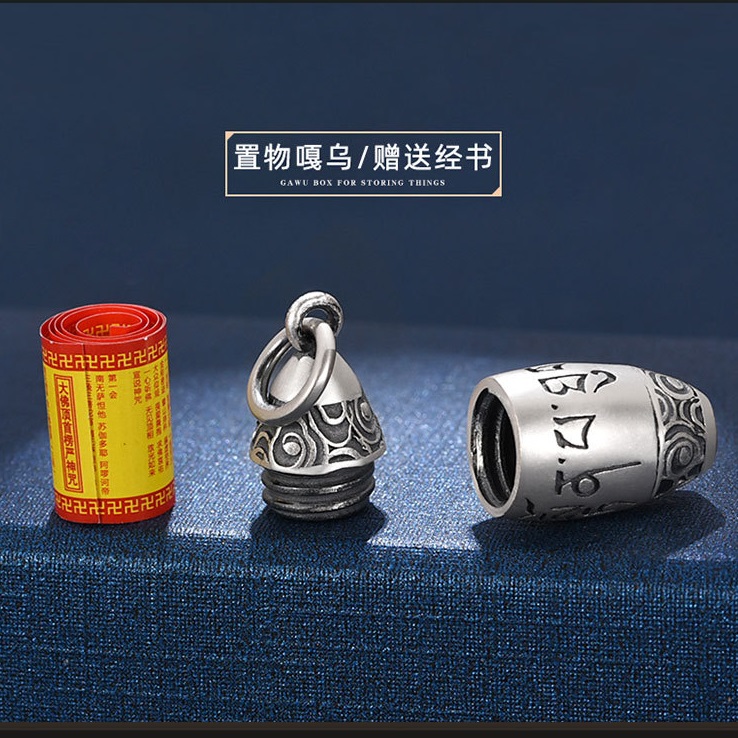 复古925纯银六字真言吊坠男女楞严咒空心可打开装藏东西项链挂件