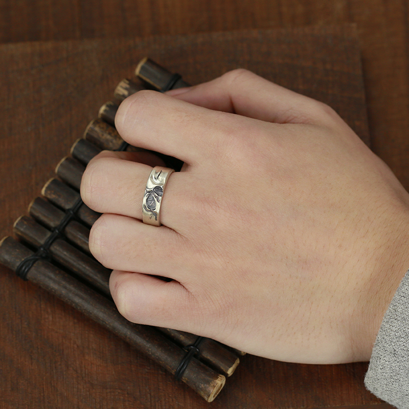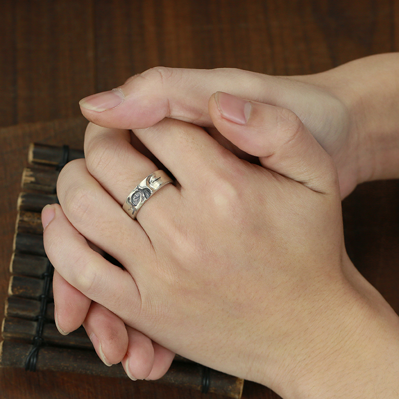 牛钝精工 DF DUAL FLOW做旧阴阳半骷髅戒指男女925纯银手工银饰