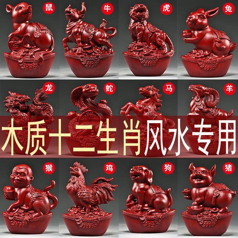 红色头十二生肖木摆73042670件12套木鼠牛实虎兔全龙蛇马羊猴鸡狗