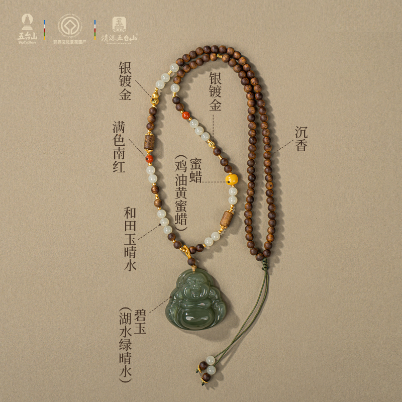 五台山晴水和田玉弥勒佛沉香链佛愿项链吊坠男女款礼物