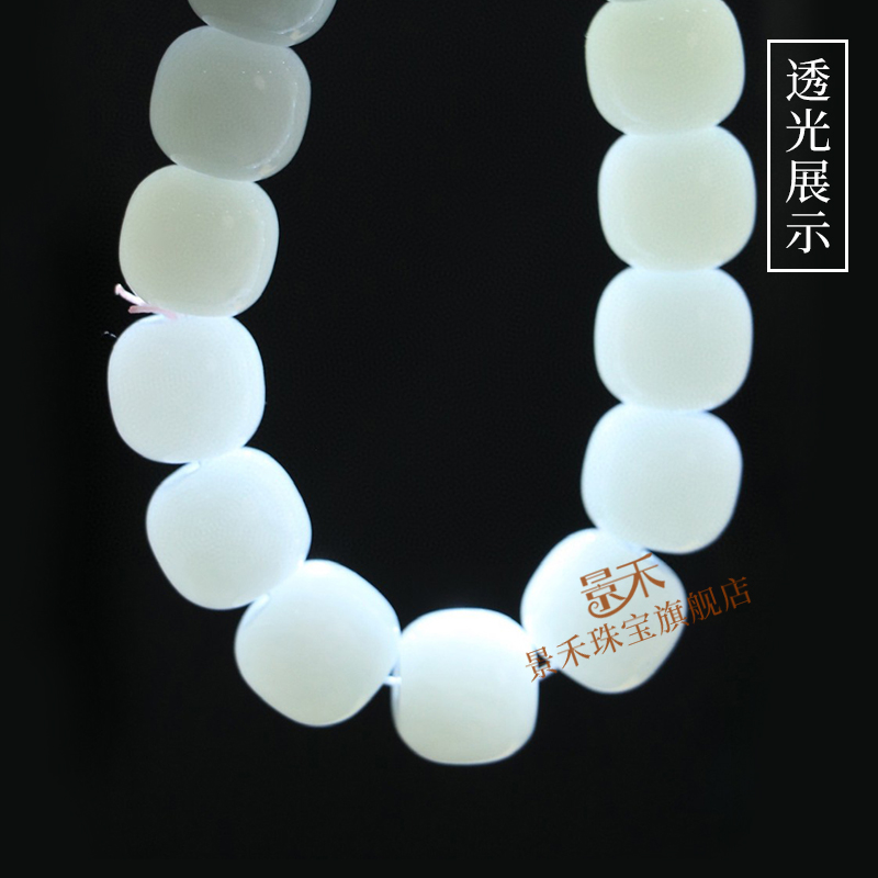 新疆和田玉羊脂白玉手串男老型珠玉石手链女桶珠路路通文玩手把件