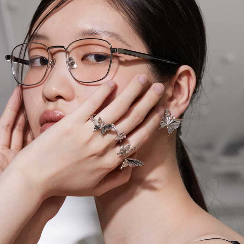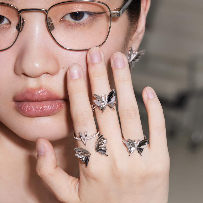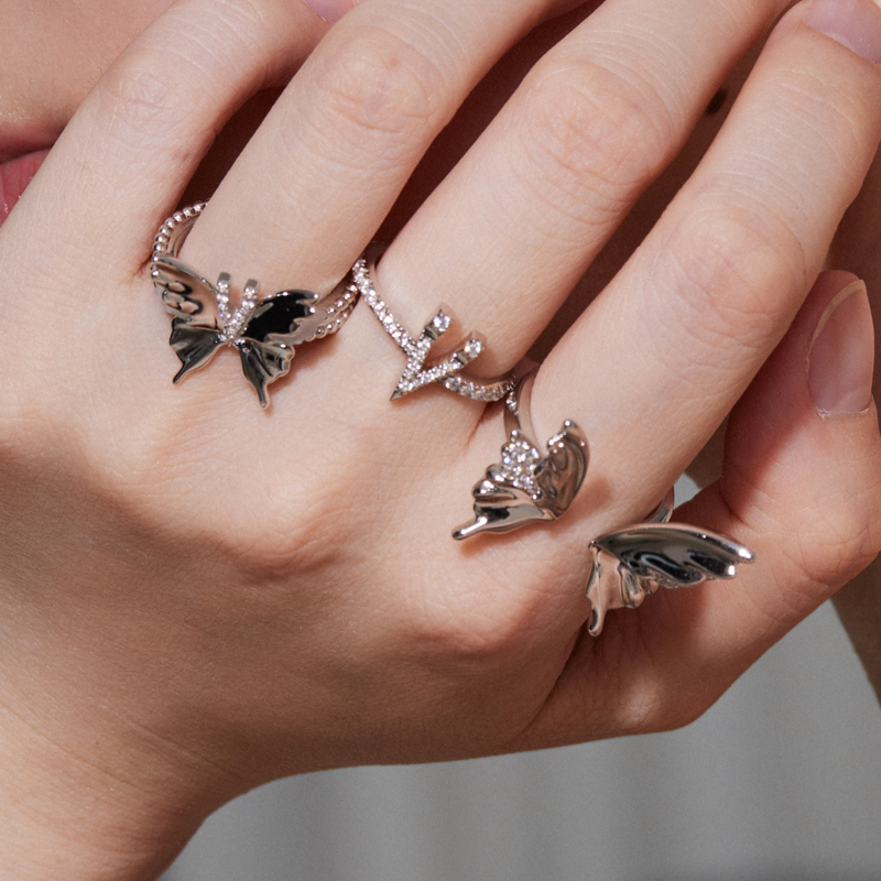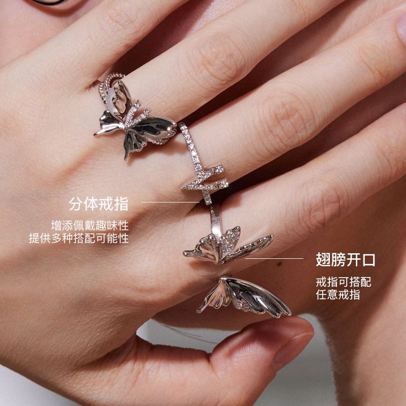 YVMIN尤目 V字六翼蝴蝶可拆分佩戴组合925银戒指生日礼物