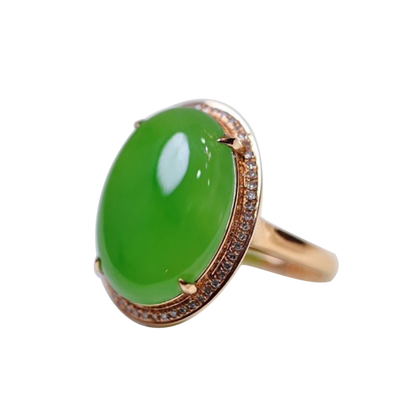 元宵节礼物天然和田玉戒指女 苹果绿碧玉蛋面镶嵌18k金指环送妈妈