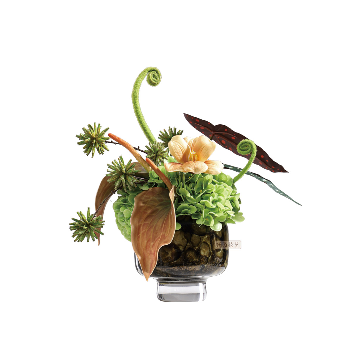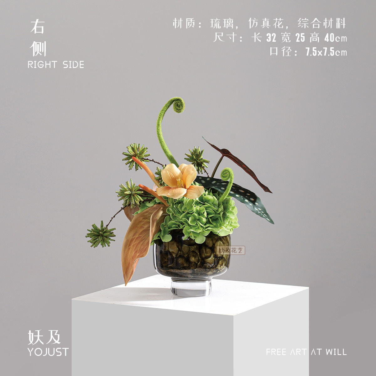 妖及 现代轻奢小桌花琉璃花器摆件 样板间酒店民宿客厅软装饰品