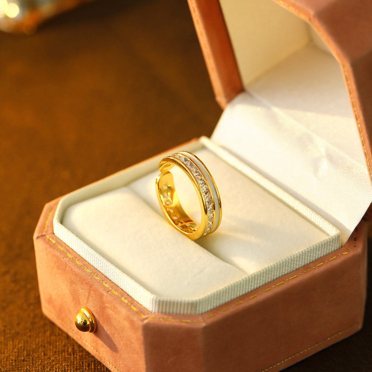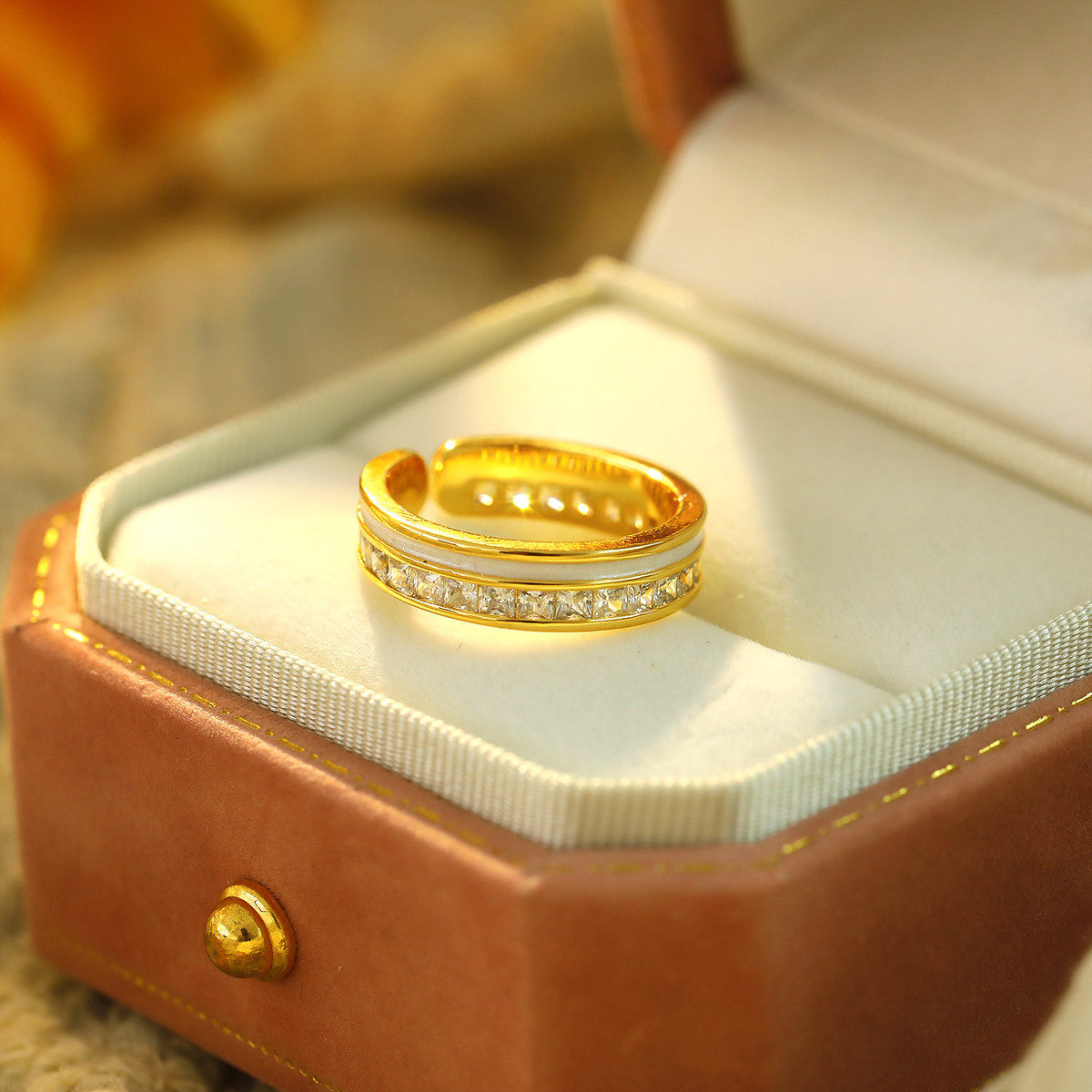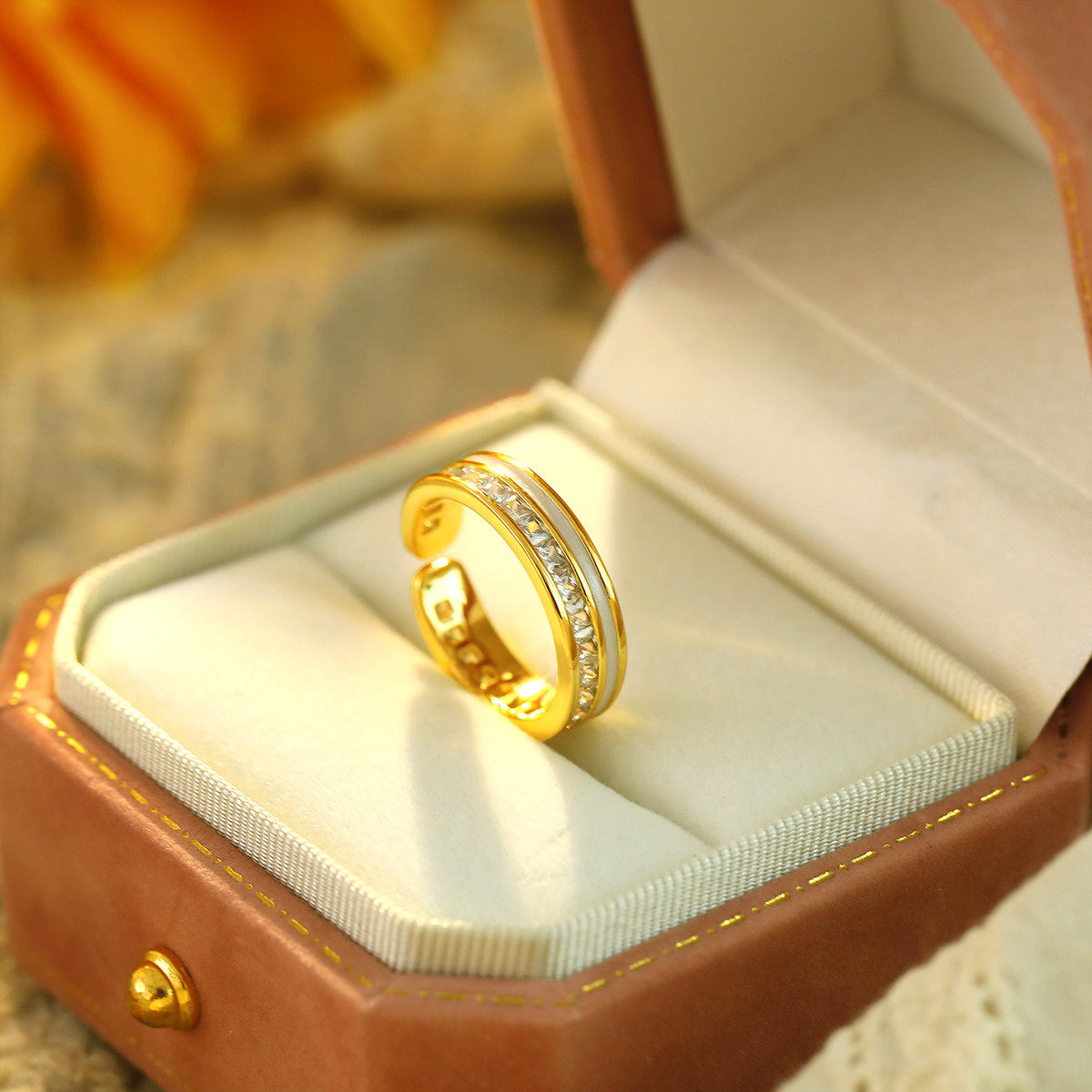 双层半圆开口戒指简约浪漫珠光白滴釉食指戒温柔密镶锆石戒指指环