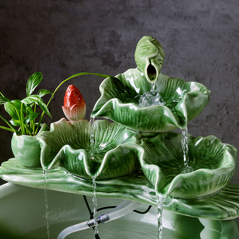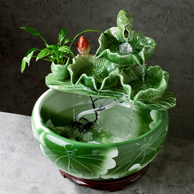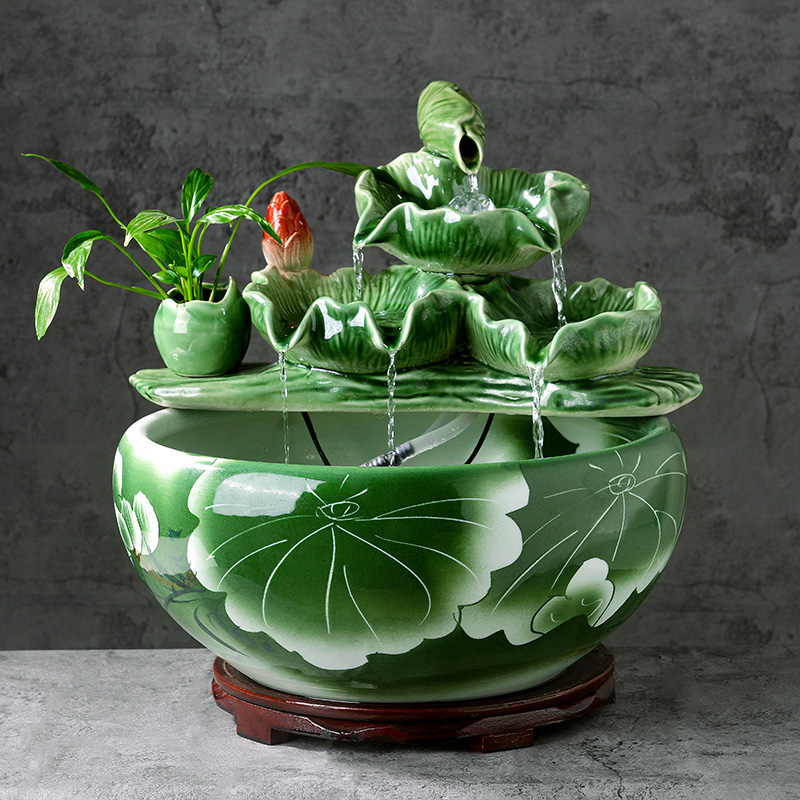 招财流水陶瓷鱼缸家用流水喷泉小金鱼缸大号养鱼摆件客厅加湿造景