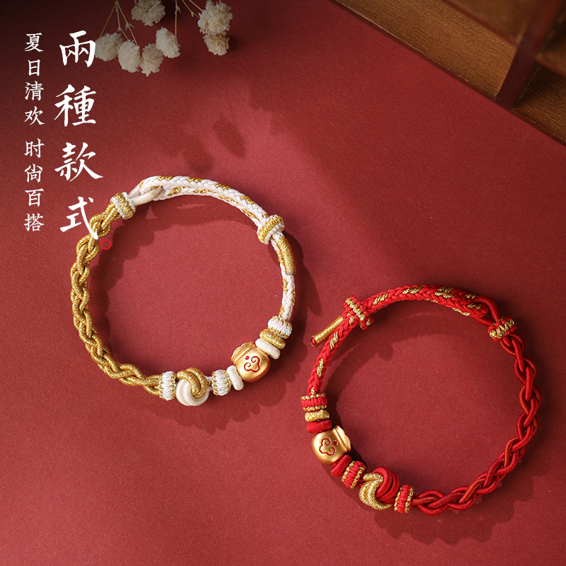 手工编织红手绳可穿珠酒窝结情侣手链送闺蜜男女朋友新年礼物简约