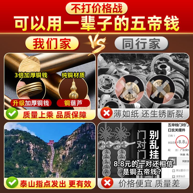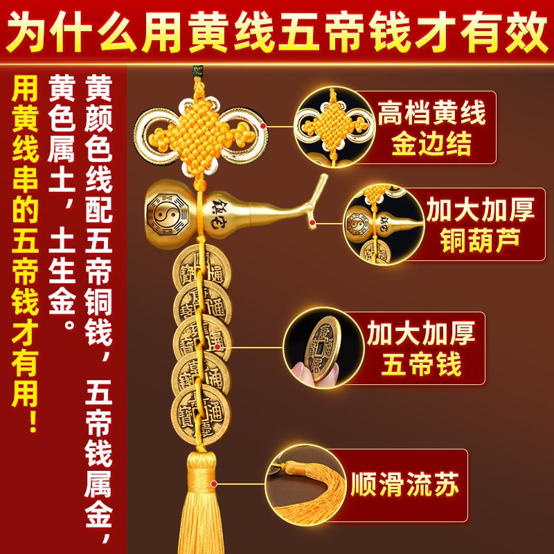 五帝钱葫芦挂件门对门黄线串的五帝钱九串黄绳子五吊钱黄线挂件