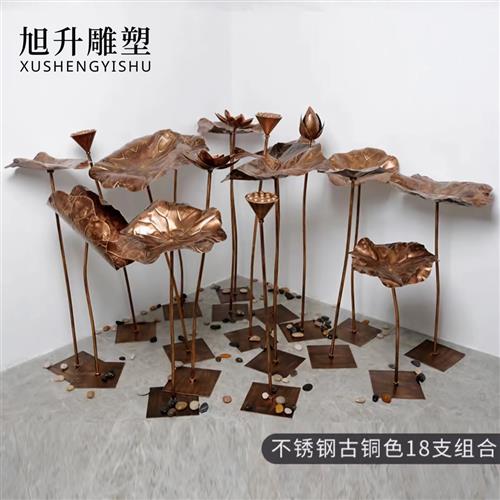 不锈钢荷叶莲蓬荷花植物雕塑酒店样板房庭院花园水景水池金属摆件