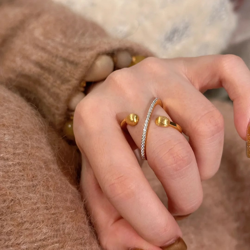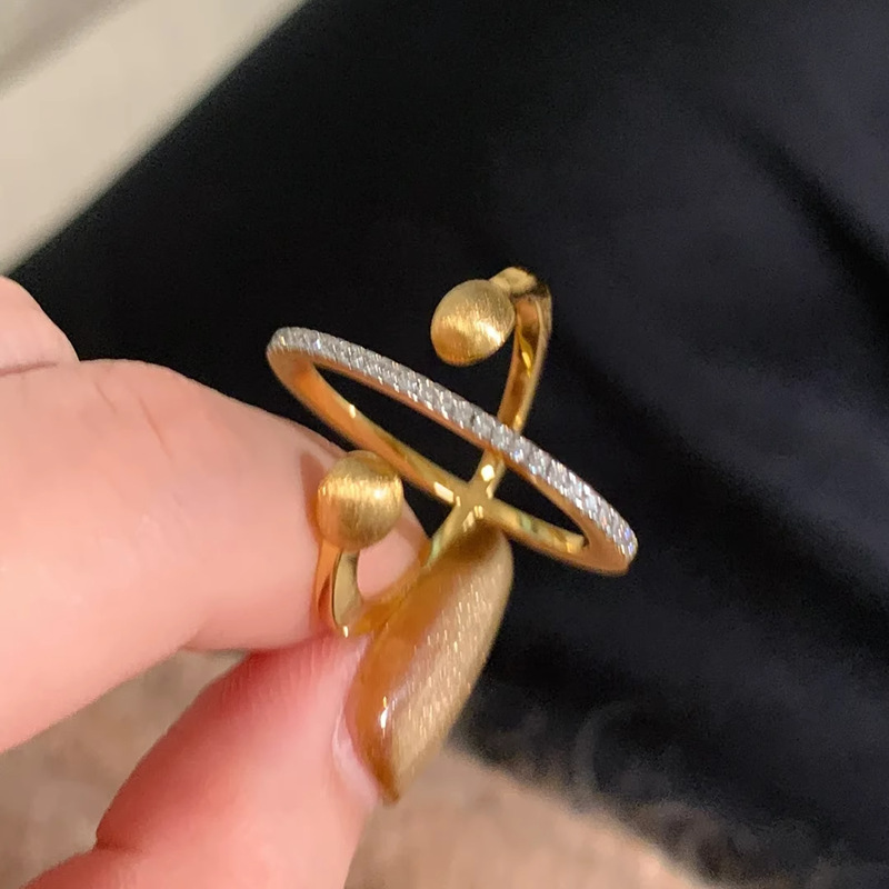 环绕拉丝星球排钻戒指女小众设计个性时尚丝巾扣指环