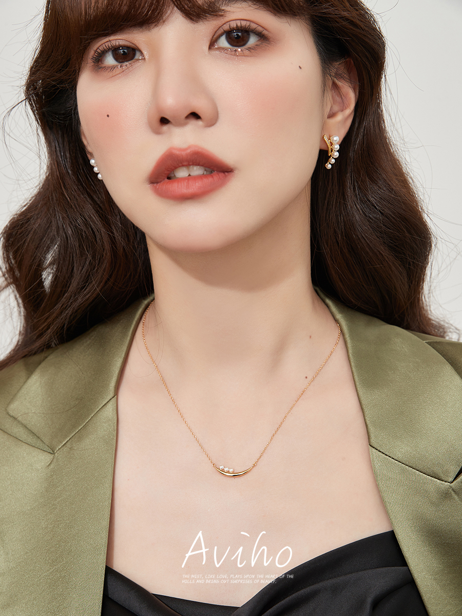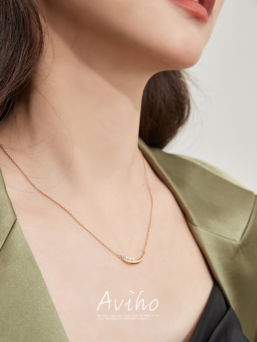 aviho 气质通勤微笑珍珠项链小众设计感轻奢锁骨链简约新款