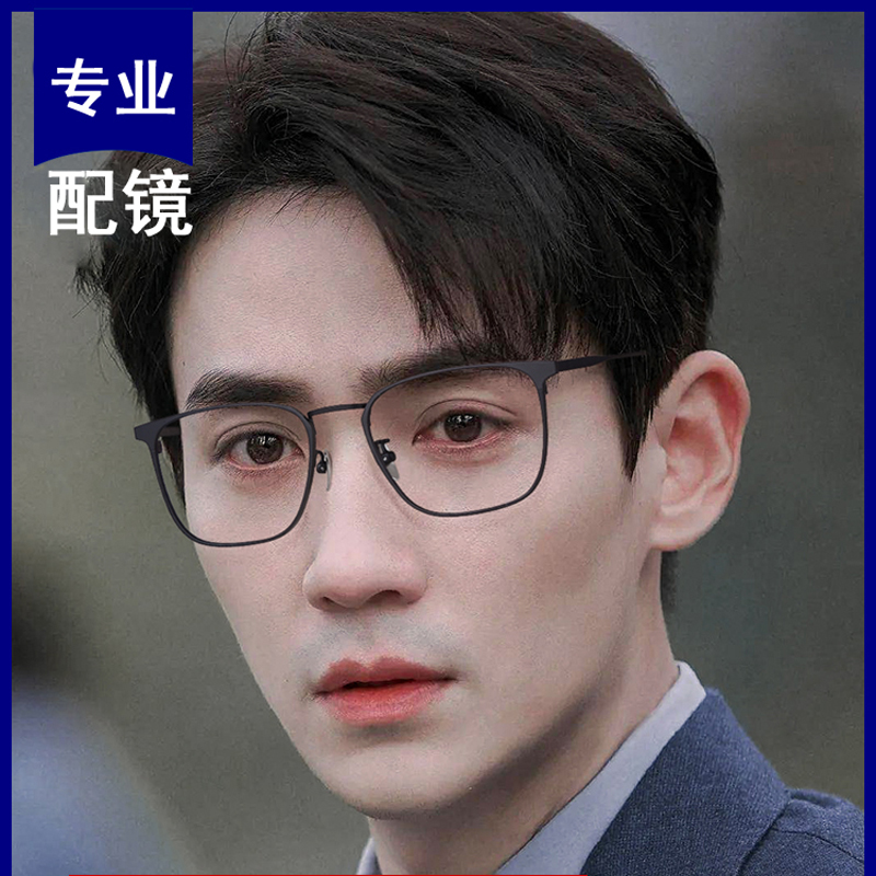配纯钛近视全款眼镜男斯文近视可配有度数平光框潮变色防雾防蓝光