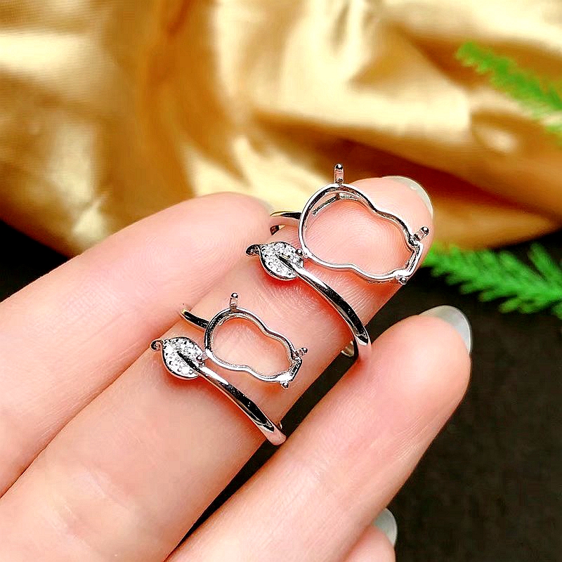 S925纯银葫芦戒指空托镀金色尺寸7*11 10*14mm女款来石代镶嵌加工