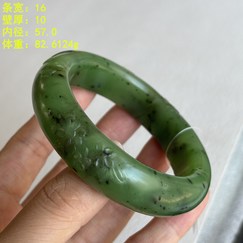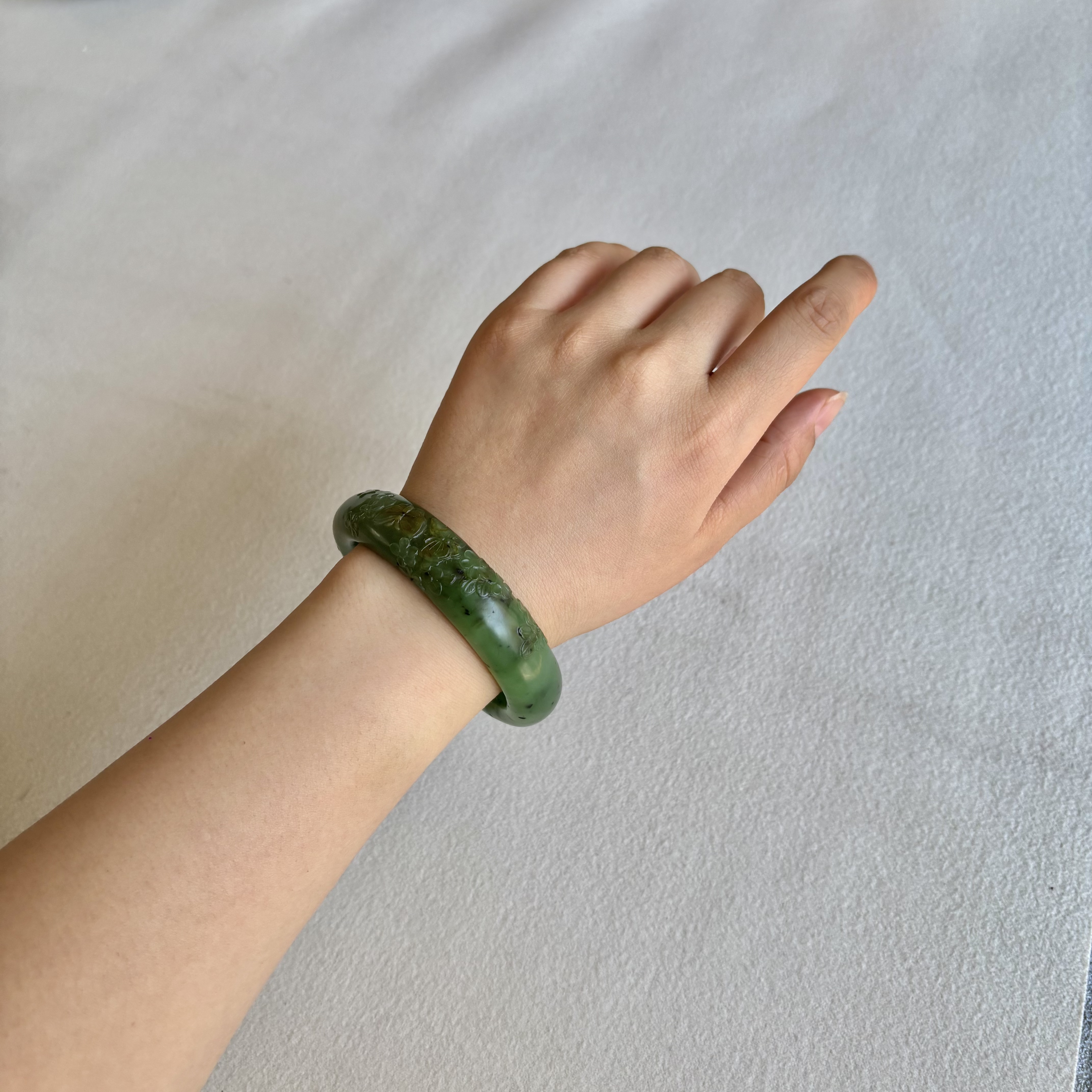 N57.0“翠阳绿”碧玉籽料手镯 有原皮 朕®开仓新疆和田玉