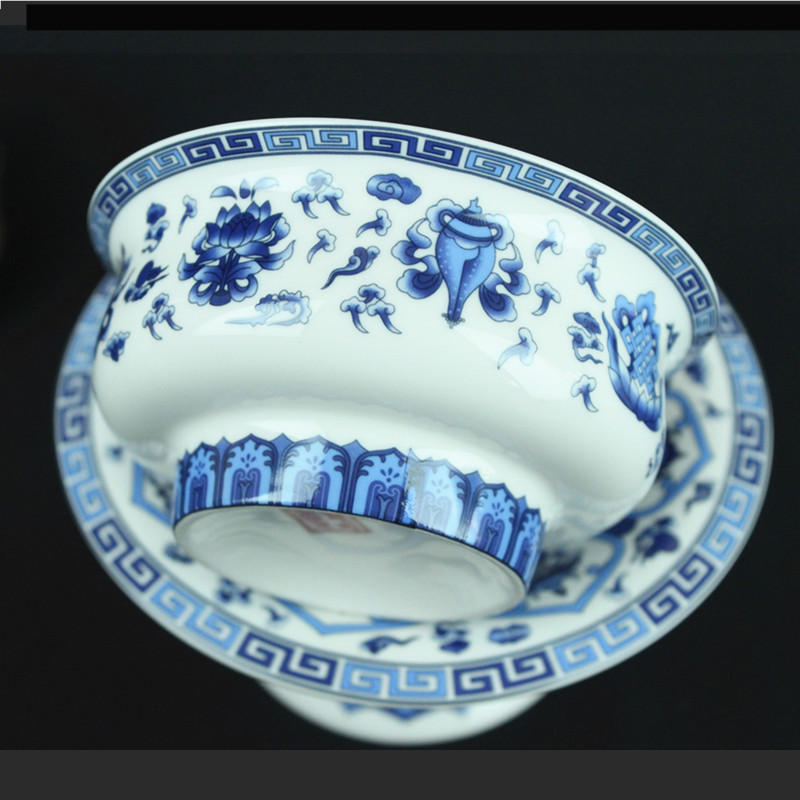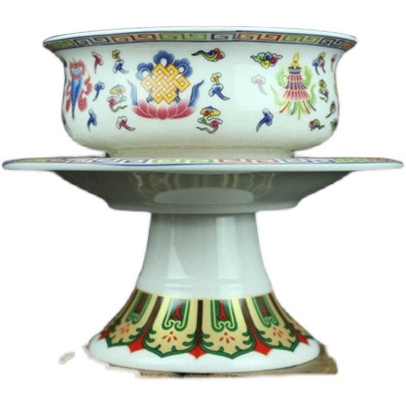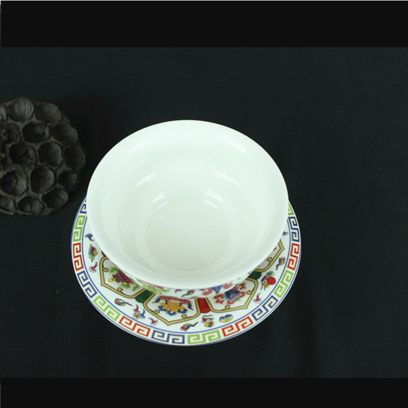 陶瓷高脚八吉祥 酥油供杯供佛斋饭碗佛前水碗佛堂礼佛供碗