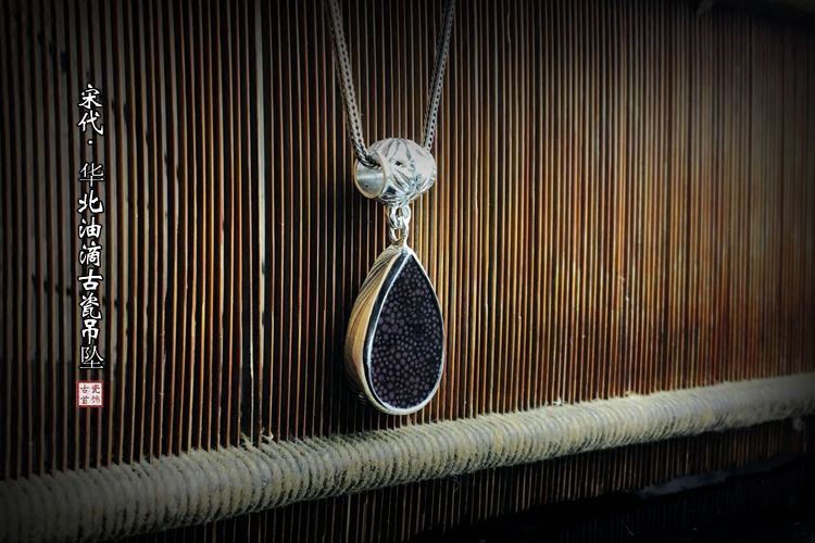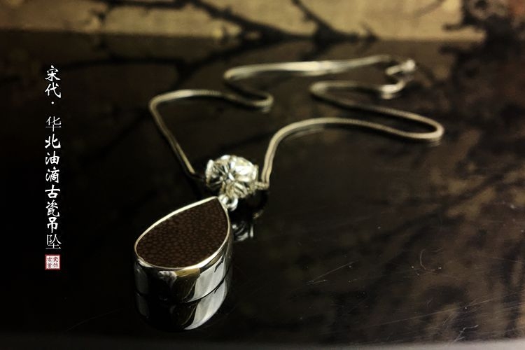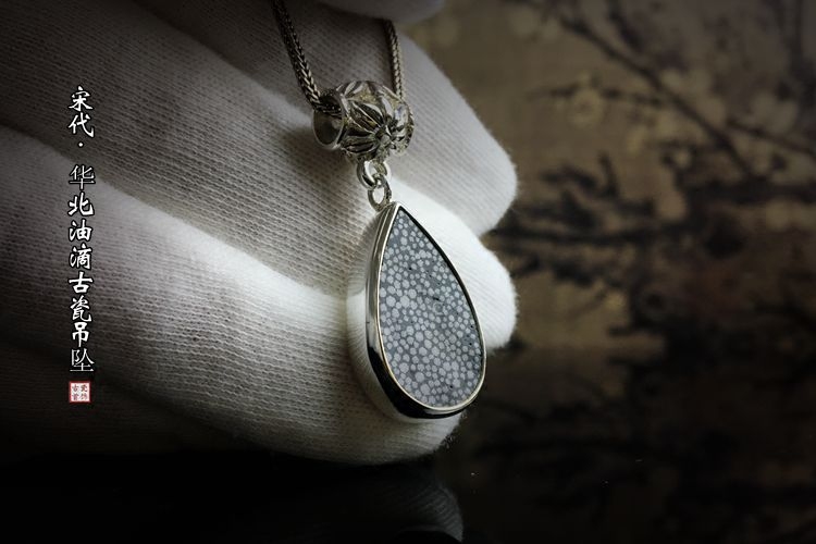 青花手工 纯银古瓷首饰品项链 吊坠女项链坠建窑建盏华北油滴民族