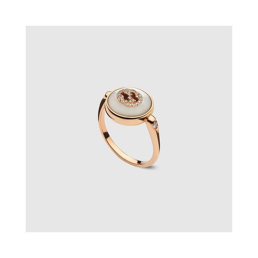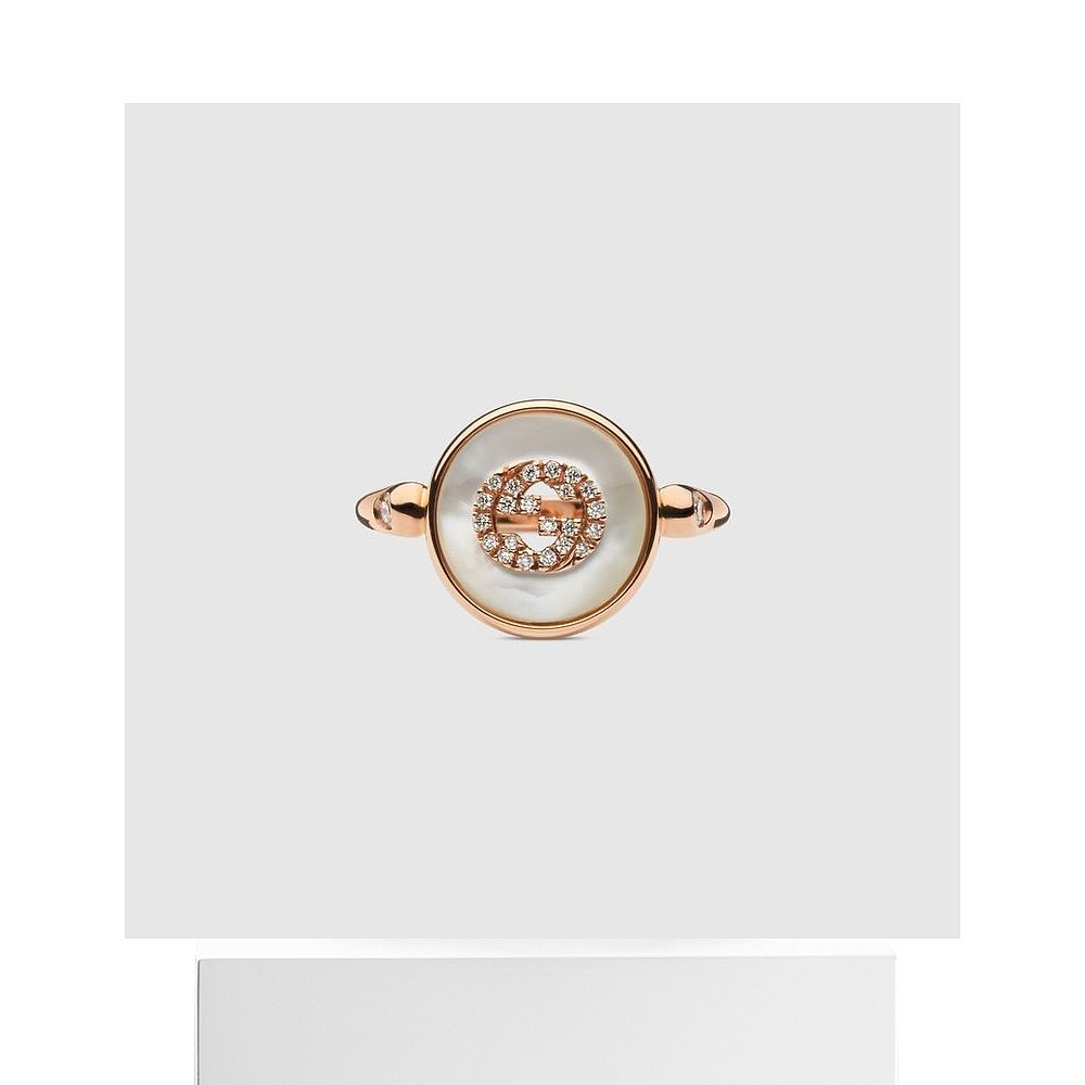 自营欧洲直邮Gucci古驰女士18k玫瑰金18k 联锁钻石戒指