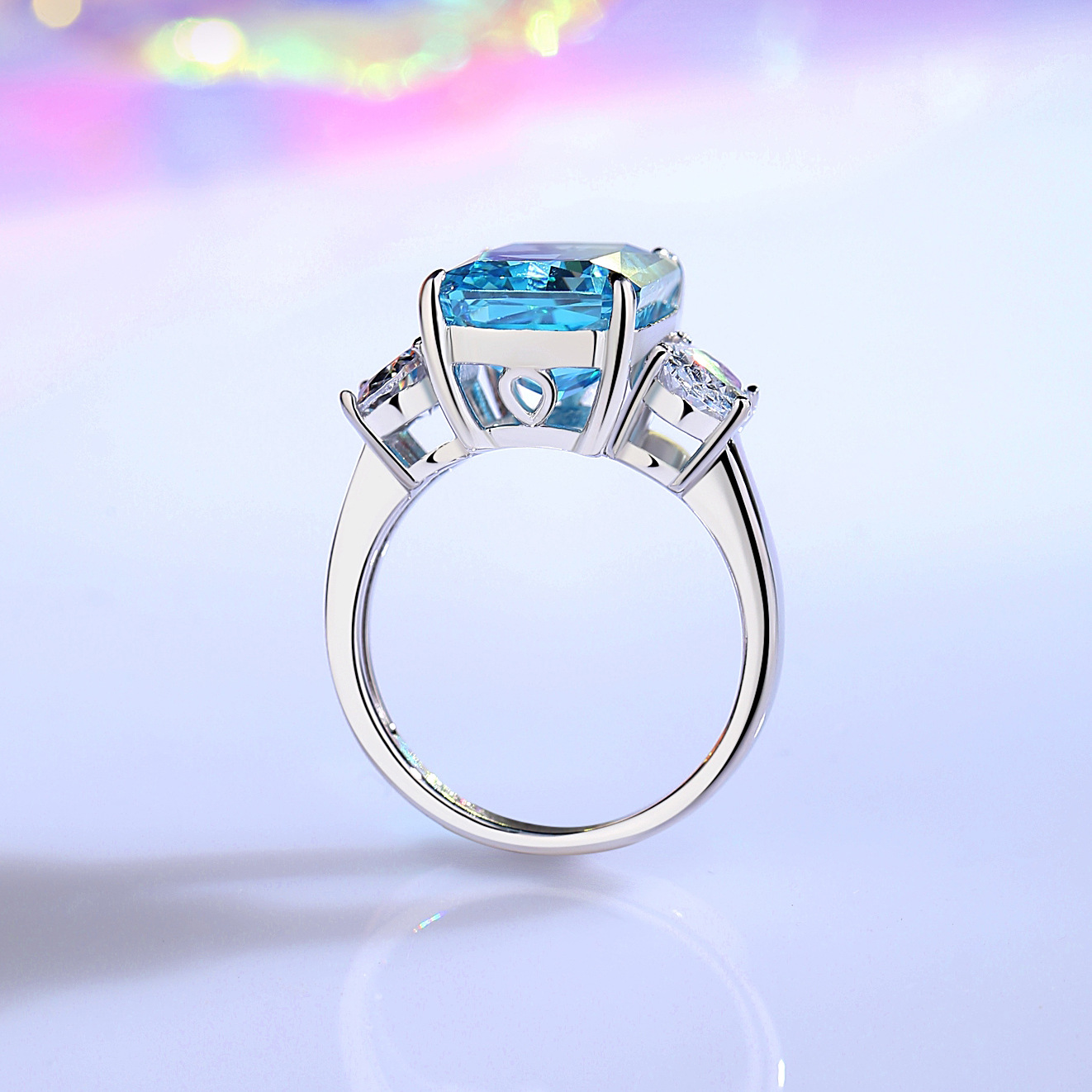 S925纯银闪耀冰花高碳钻鹅黄色冰糖女戒指时尚轻奢欧美风指环