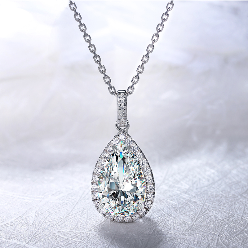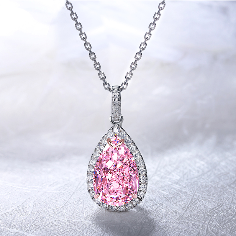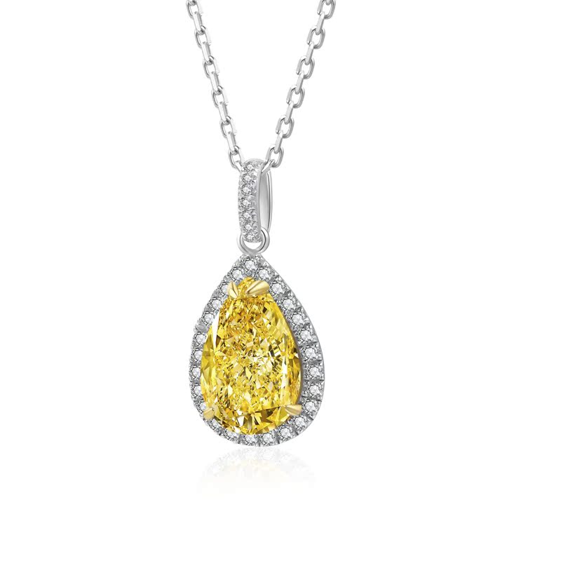 时尚彩钻925纯银镀金镶嵌水滴仿真黄钻项链百搭3卡欧美粉钻锁骨链