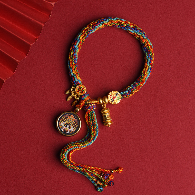 藏式唐卡手绳五爷款唐卡手链女手工编织财神藏式手串国潮唐卡手