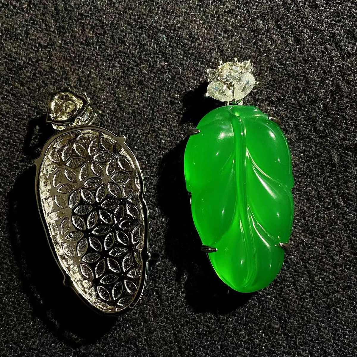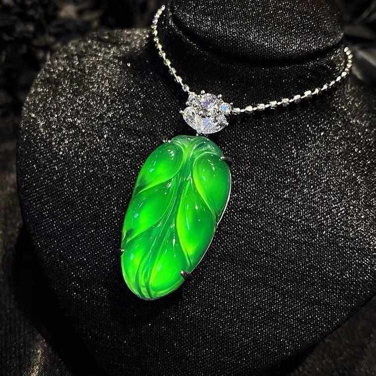 厂家批发 925镀银镶嵌高冰绿玉髓树叶吊坠玛瑙时尚款玉石挂件饰品