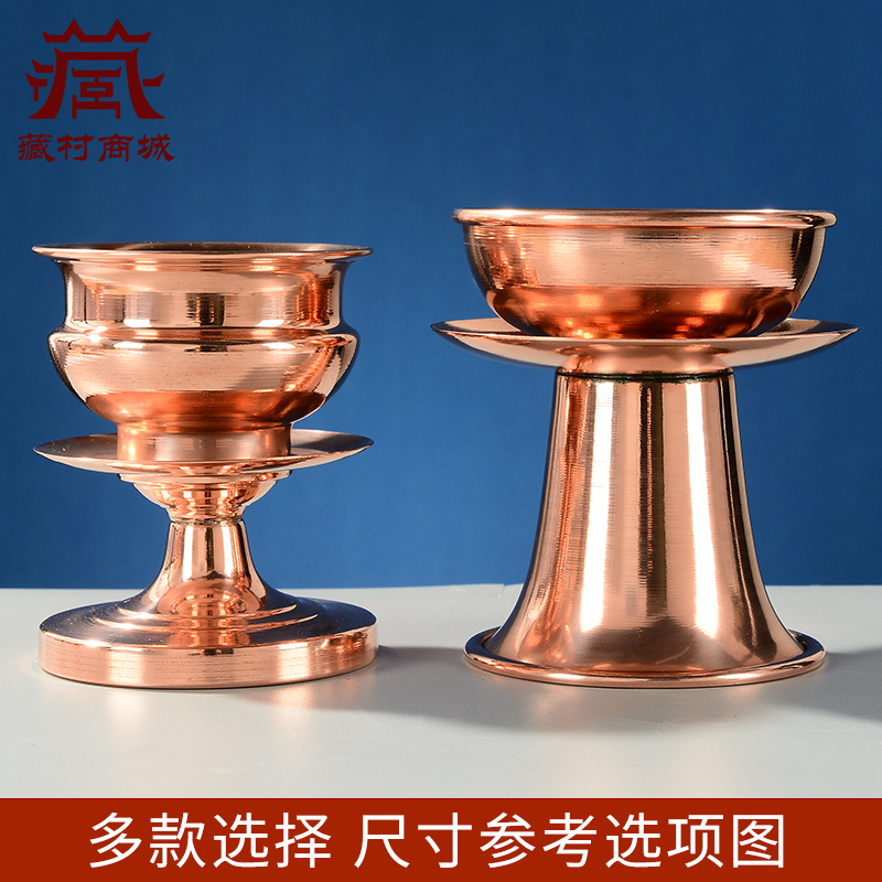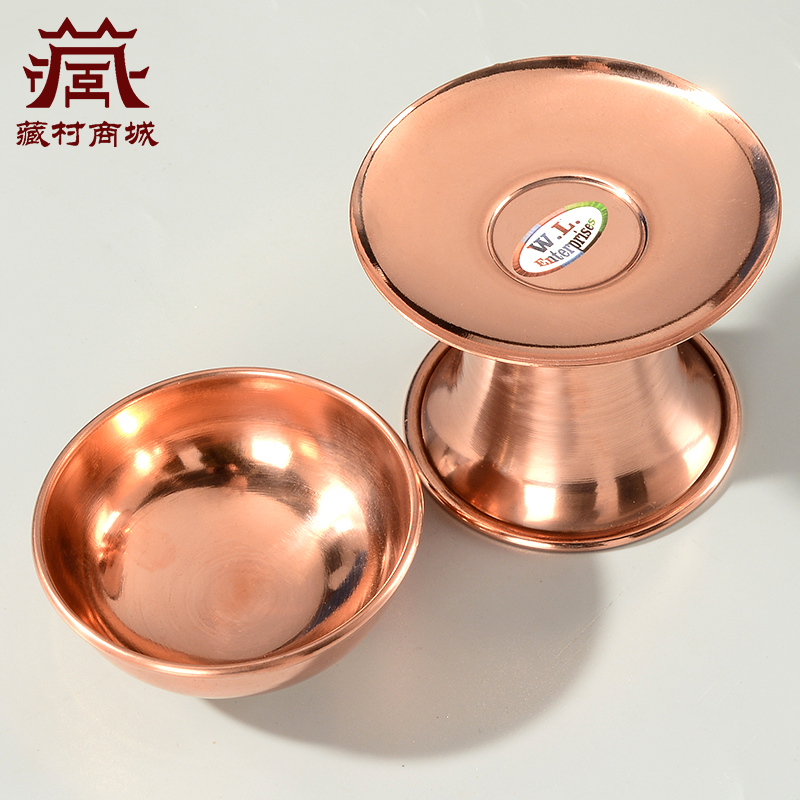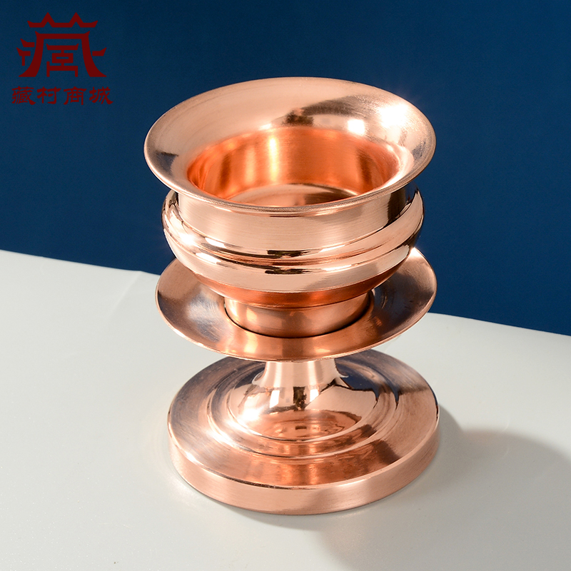 藏村红铜高脚供水碗室内家用光面供水杯圣水杯桌面净水贡杯