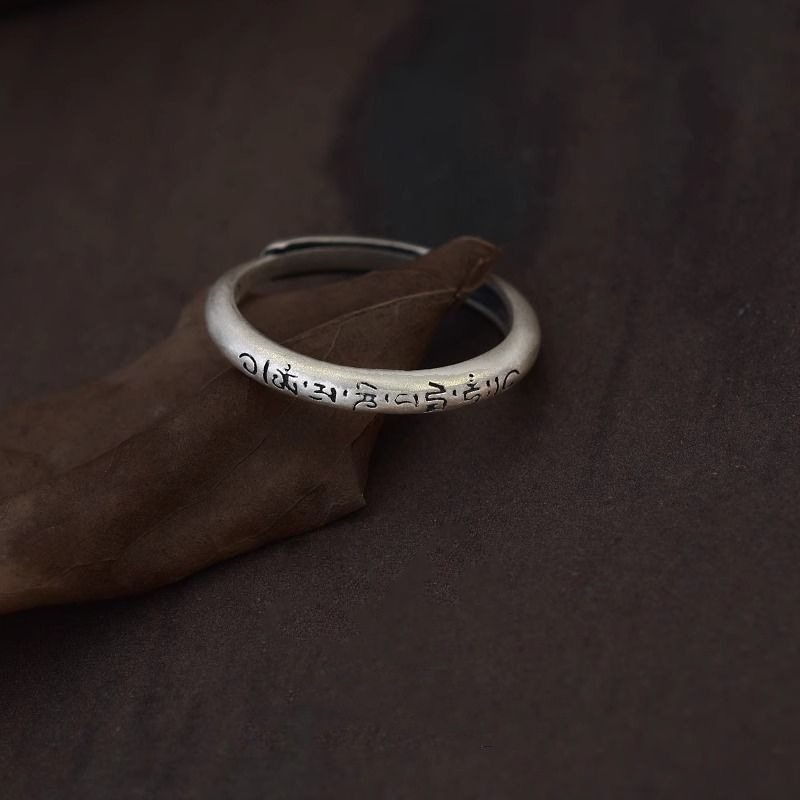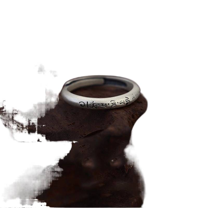 新品西藏六字真言经文戒指情侣戒复古素圈开口可调尾戒