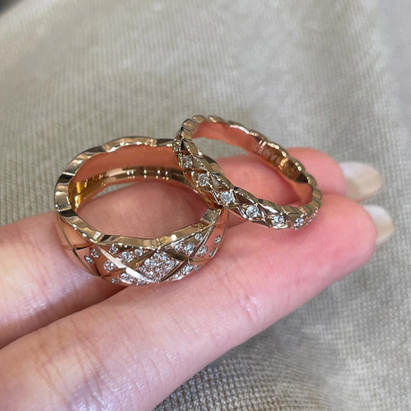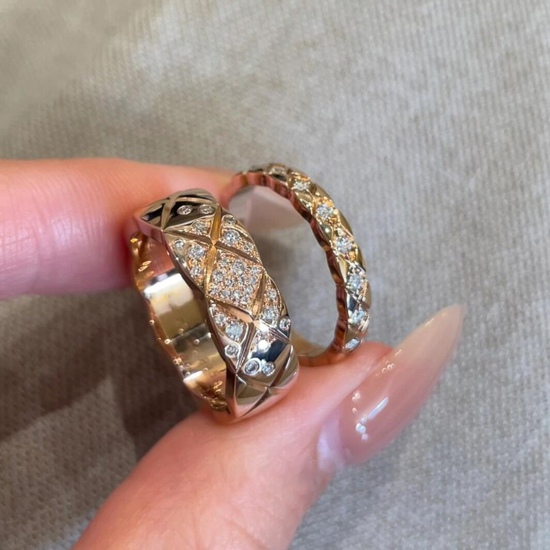 小香风菱格仿闪钻宽面戒指女轻奢高级感气质食指戒2025年新款爆款