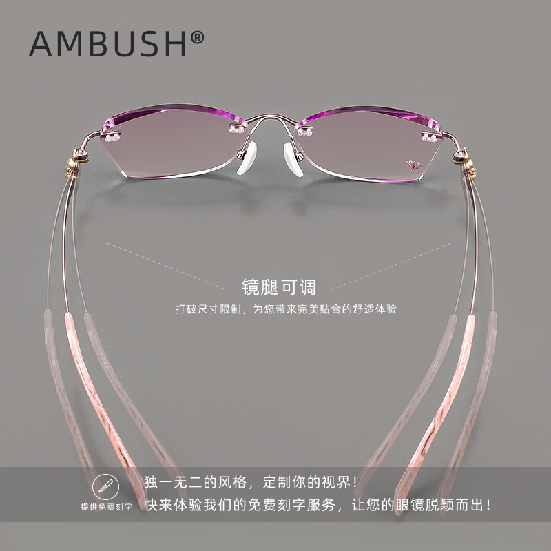 AMBUSH无框时尚超轻纯钛女士近视眼镜御姐切边可配度数纯欲眼睛架