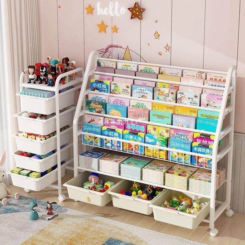 可移动书架绘本架儿童玩具收纳盒整理宝宝书柜落地简易卧室置奥跃