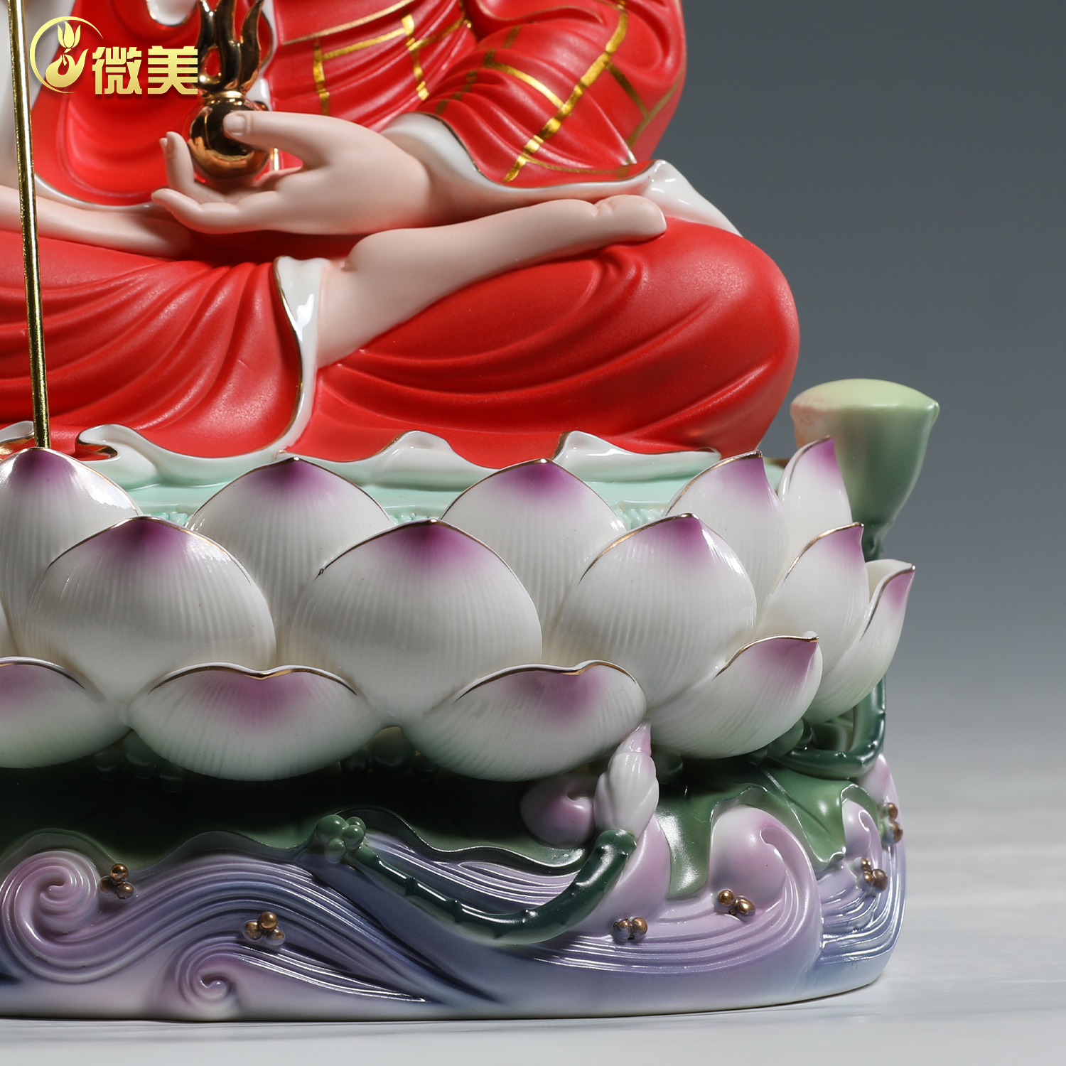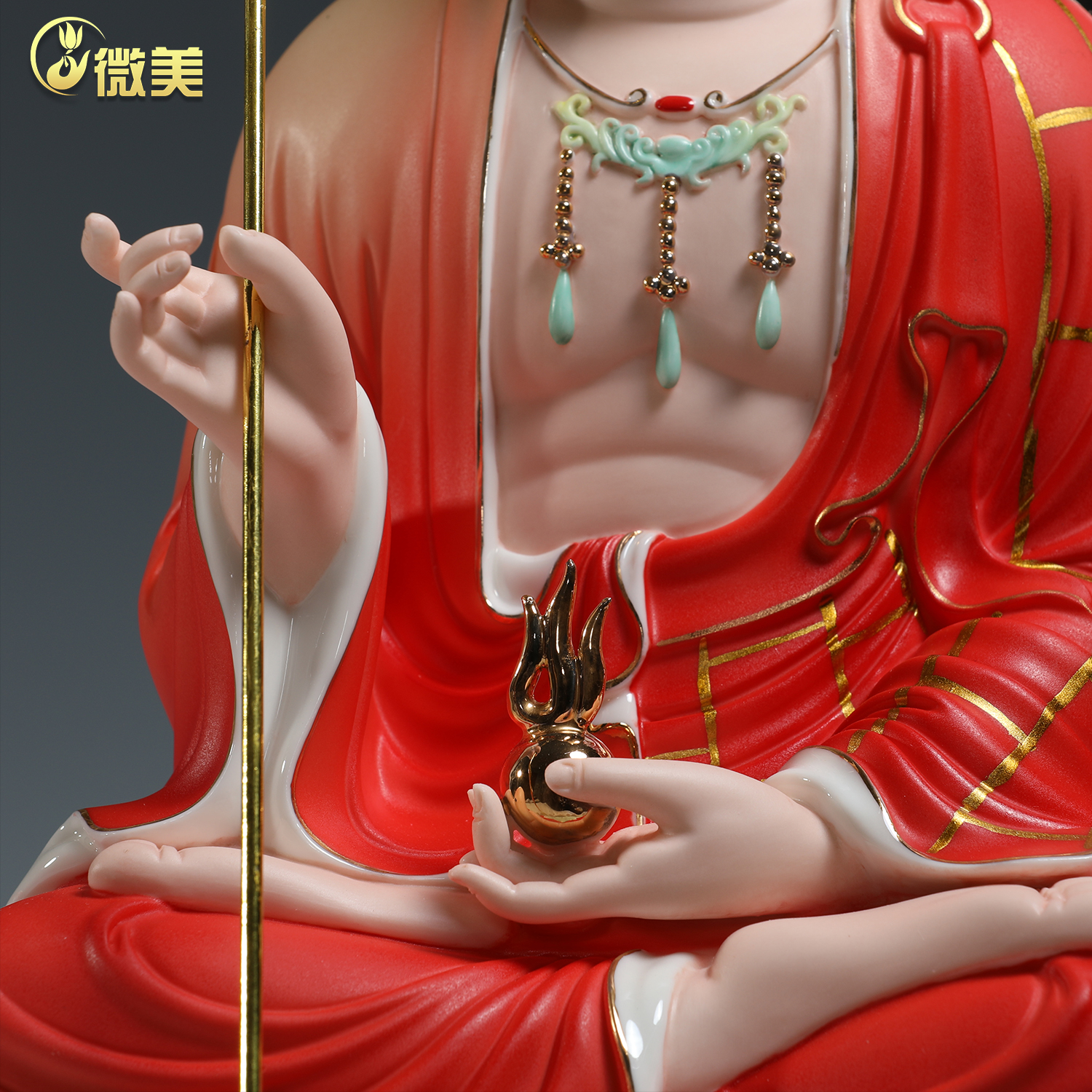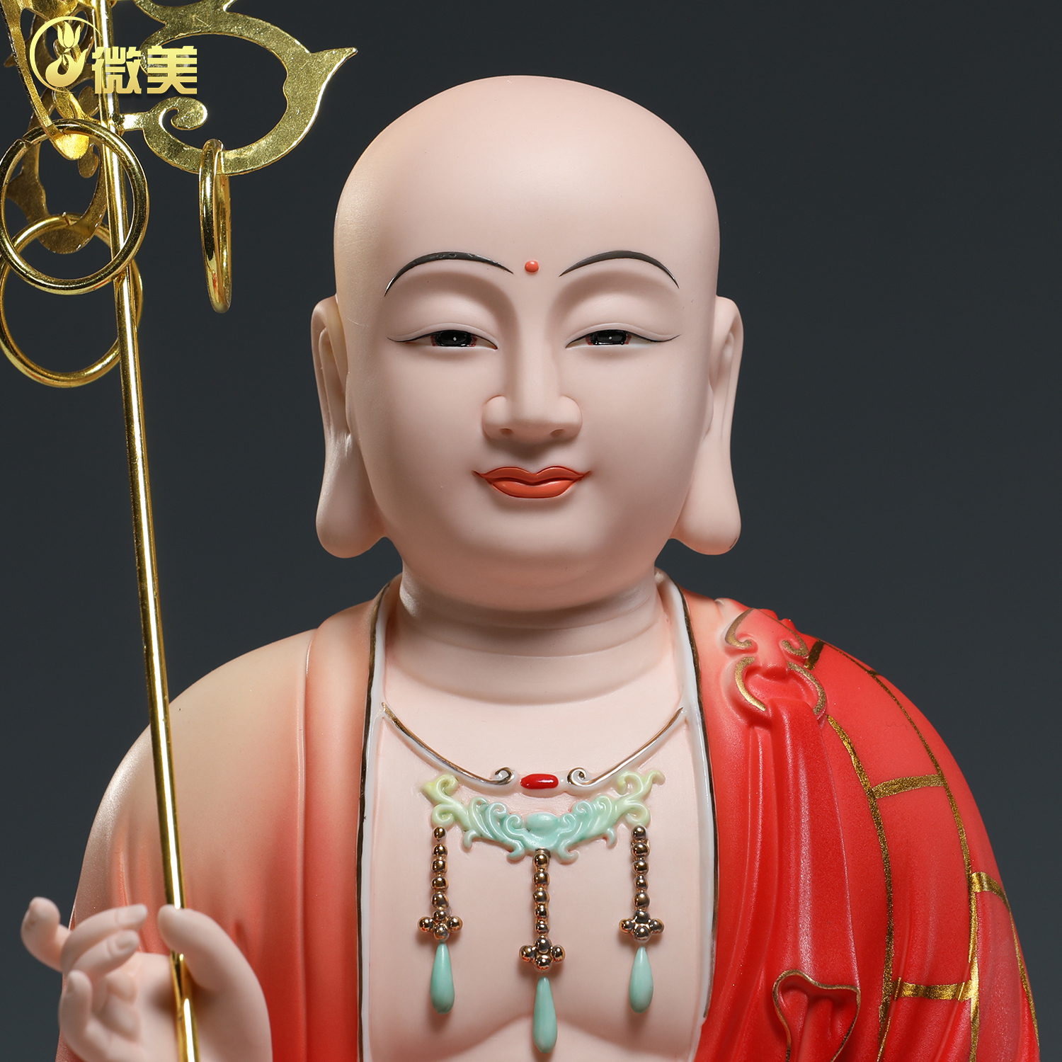 微美陶瓷14寸坐三莲地藏王菩萨佛像彩绘袈裟地藏居家供奉佛堂摆件