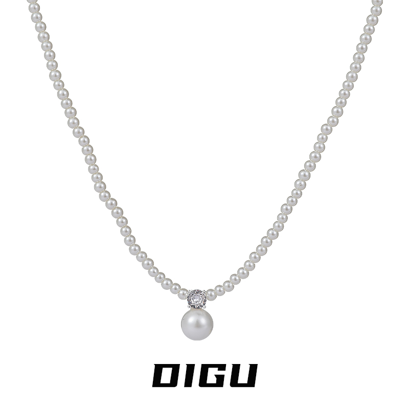 DIGU法式气质优雅镶钻珍珠项链轻奢小众高级感串珠锁骨链百搭颈链
