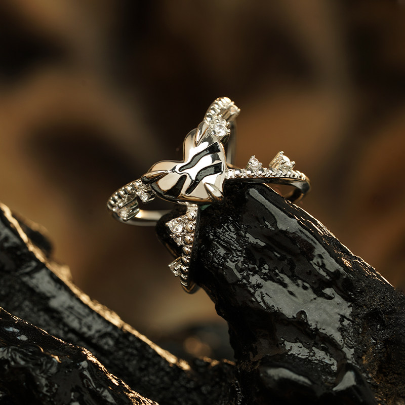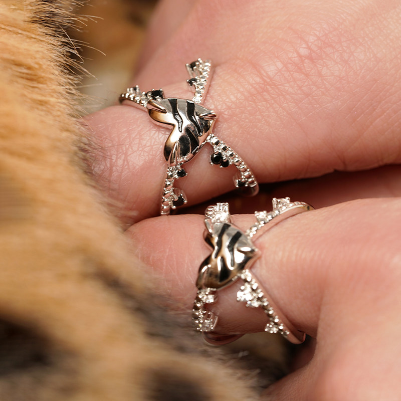 绘间【萌虎猛虎-虎牙戒指】男女情侣对戒情七夕礼物开口调节戒指