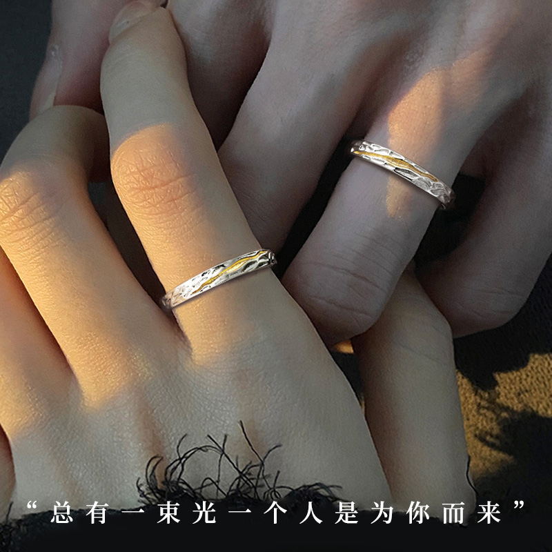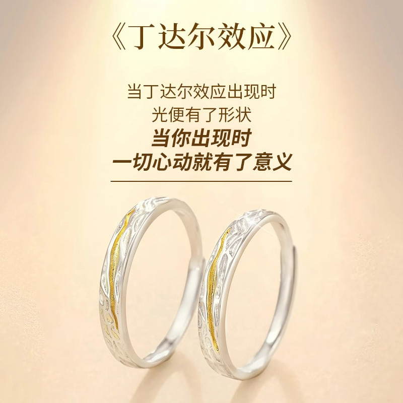 中国黄金珍尚银丁达尔效应情侣对戒纯银戒指女七夕礼物送女友S925