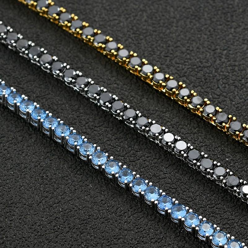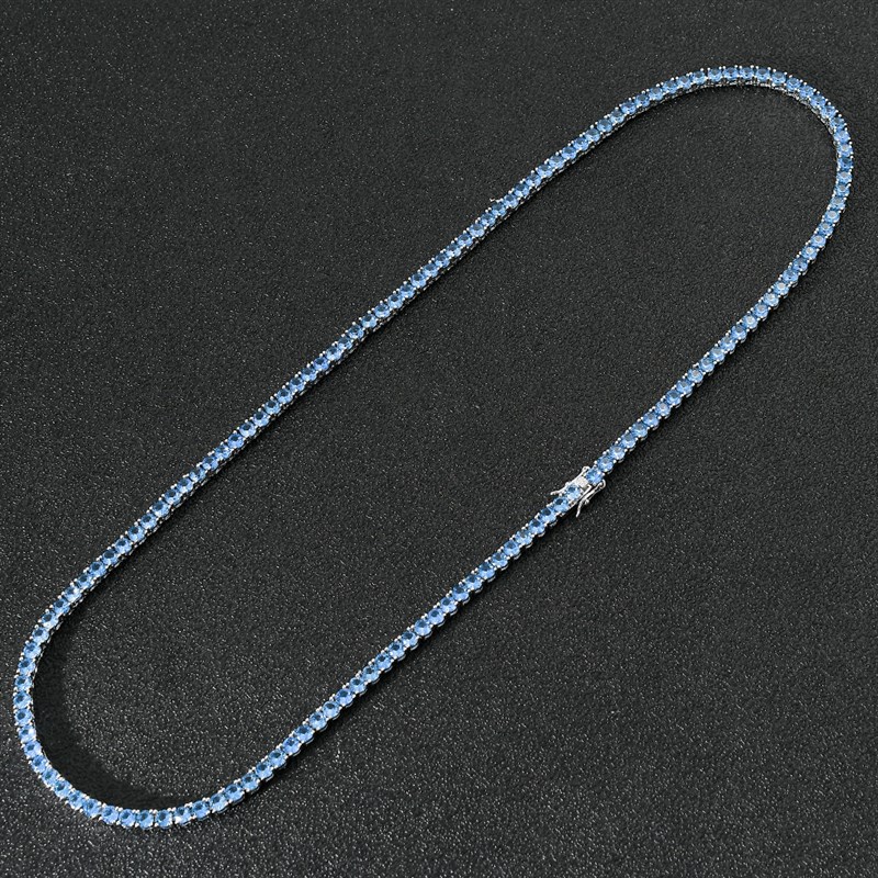 ICE BLING 4MM海蓝色锆石项炼 欧美嘻哈小众设计彩色网球项炼男女