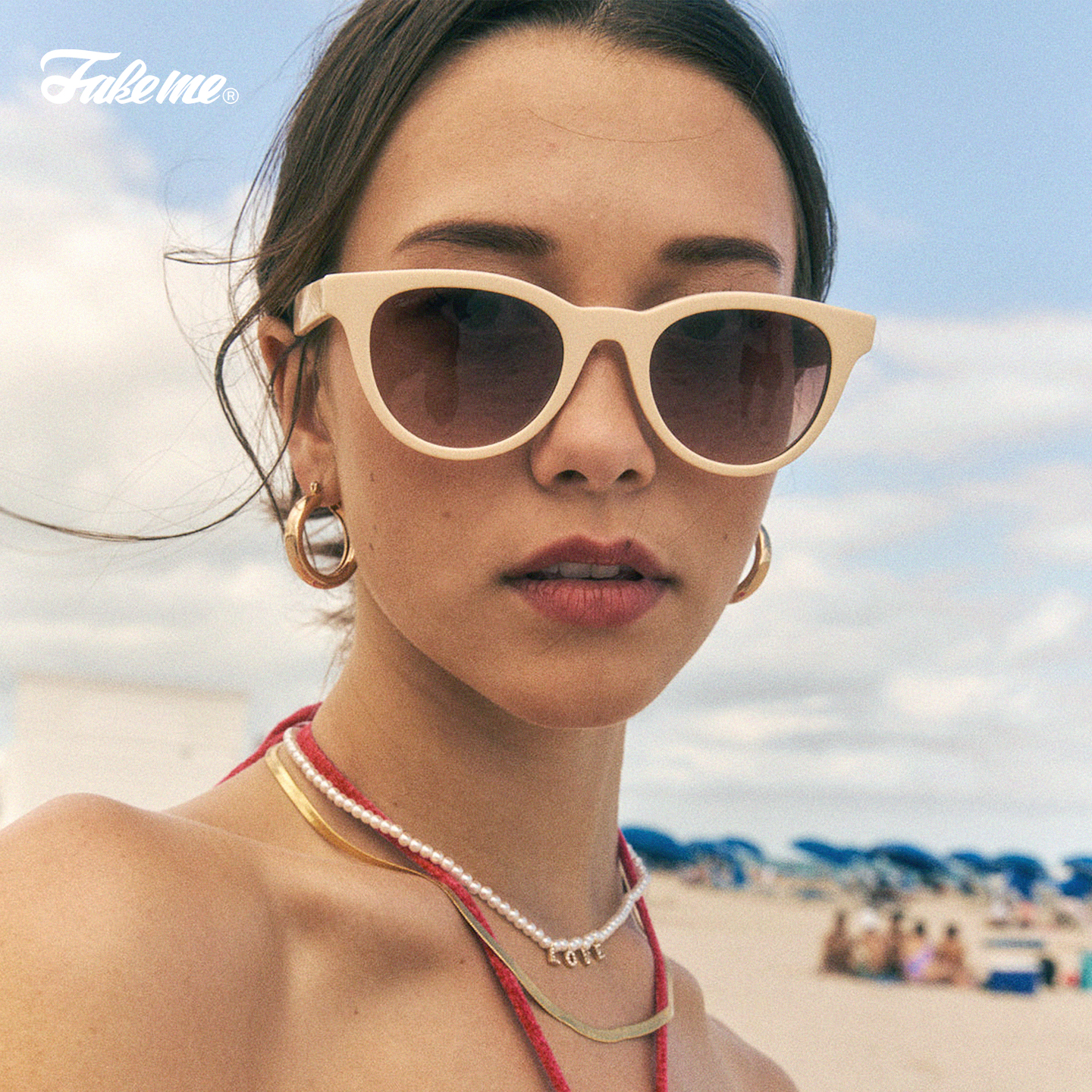 Fakeme 时尚质感墨镜复古防晒太阳镜白框眼镜高级感