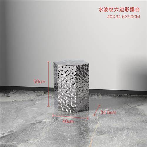 现代轻奢水波纹不锈钢酒店售楼部会所服装店雕塑台展示台落地摆件